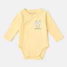 Questo adorabile body giallo per neonati è un accogliente abbraccio di morbidezza! Realizzato in un cotone delicato, presenta un simpatica stampa di un orsetto che porta un messaggio d'amore. Le maniche lunghe lo rendono perfetto per tenere il tuo piccolo al caldo durante le prime avventure. Il design pratico a incrocio facilita il cambio, mentre il colore solare porterà un sorriso a qualsiasi giornata. Nonostante sia un capo usato, è in ottime condizioni, pronto a diventare il compagno ideale per il tuo bambino! Un must-have per ogni piccolo esploratore!