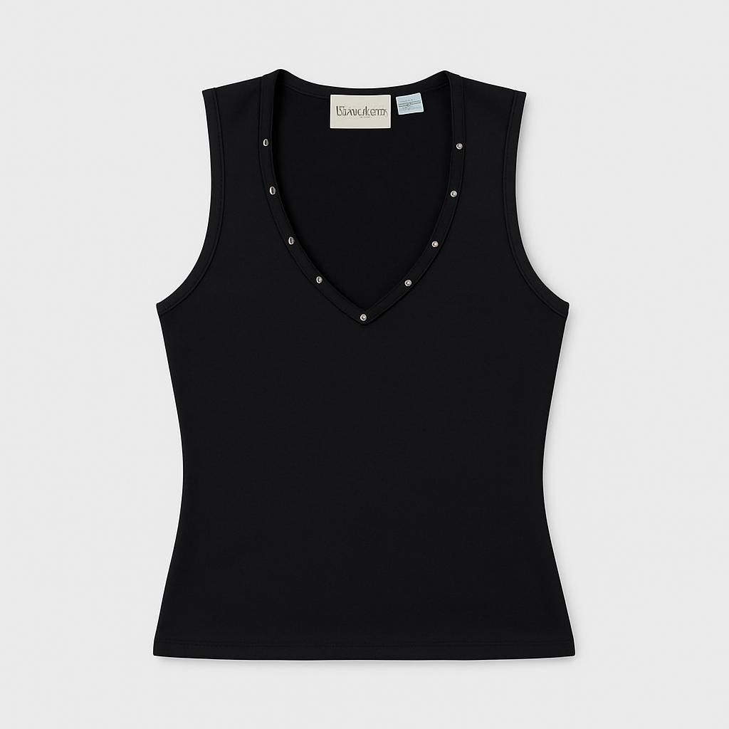 Questa elegante canotta nera è un capo versatile che non può mancare nel guardaroba delle piccole fashioniste! Realizzata in un morbido materiale, offre comfort e una vestibilità perfetta per ogni occasione. Il suo scollo a V è impreziosito da delicati dettagli con applicazioni di perline, che aggiungono un tocco di raffinatezza. Perfetta per essere abbinata a jeans o gonne, è ideale per feste, eventi o semplicemente per un look chic nel quotidiano. Nonostante sia un capo usato, si presenta in ottime condizioni, pronta per essere indossata!