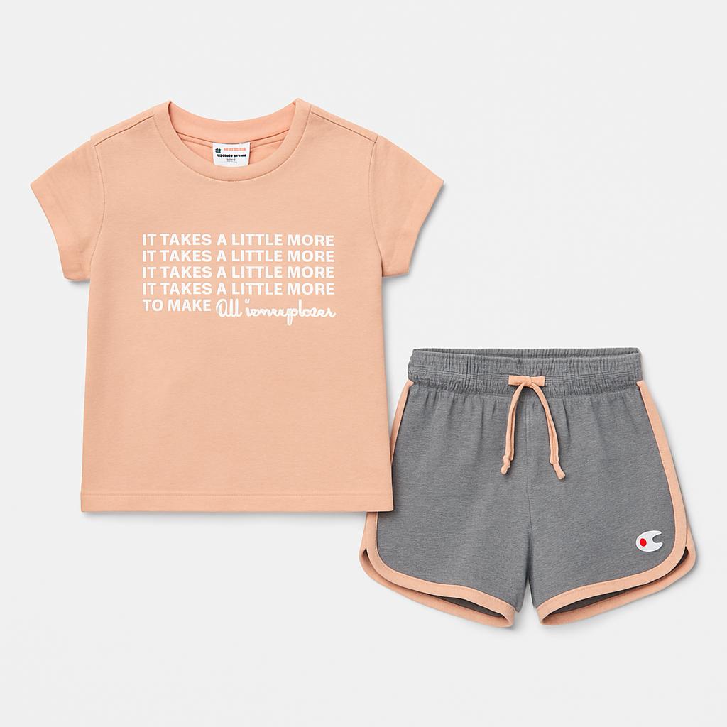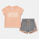 Questo adorabile set Champion è perfetto per le piccole pioniere della moda! Composto da una t-shirt rosa pallido con una scritta giocosa sul davanti, promette comfort e stile. I pantaloni corti grigi, con dettagli arancioni, completano il look casual e vivace. Realizzati in morbido cotone, sono ideali per le avventure estive e i giochi all’aperto. Nonostante siano usati, si trovano in ottime condizioni e saranno perfetti per rendere ogni giornata speciale e alla moda! Un must per ogni piccolo trendsetter!