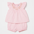 Questo adorabile completo per bambini è un vero sogno per le piccole fashioniste! Composto da una dolce maglietta rosa e pantaloni coordinati, è realizzato in un fresco tessuto leggero, perfetto per le calde giornate estive. La maglietta è rende ancora più speciale da ricami floreali delicati sul collo, aggiungendo un tocco di eleganza e stile. Le maniche svolazzanti donano un'aria giocosa, mentre i pantaloni con elastico garantiscono comfort e libertà di movimento. Nonostante sia un capo usato, si presenta in ottime condizioni, pronto per accompagnare le avventure quotidiane della tua piccola con semplicità e charm!