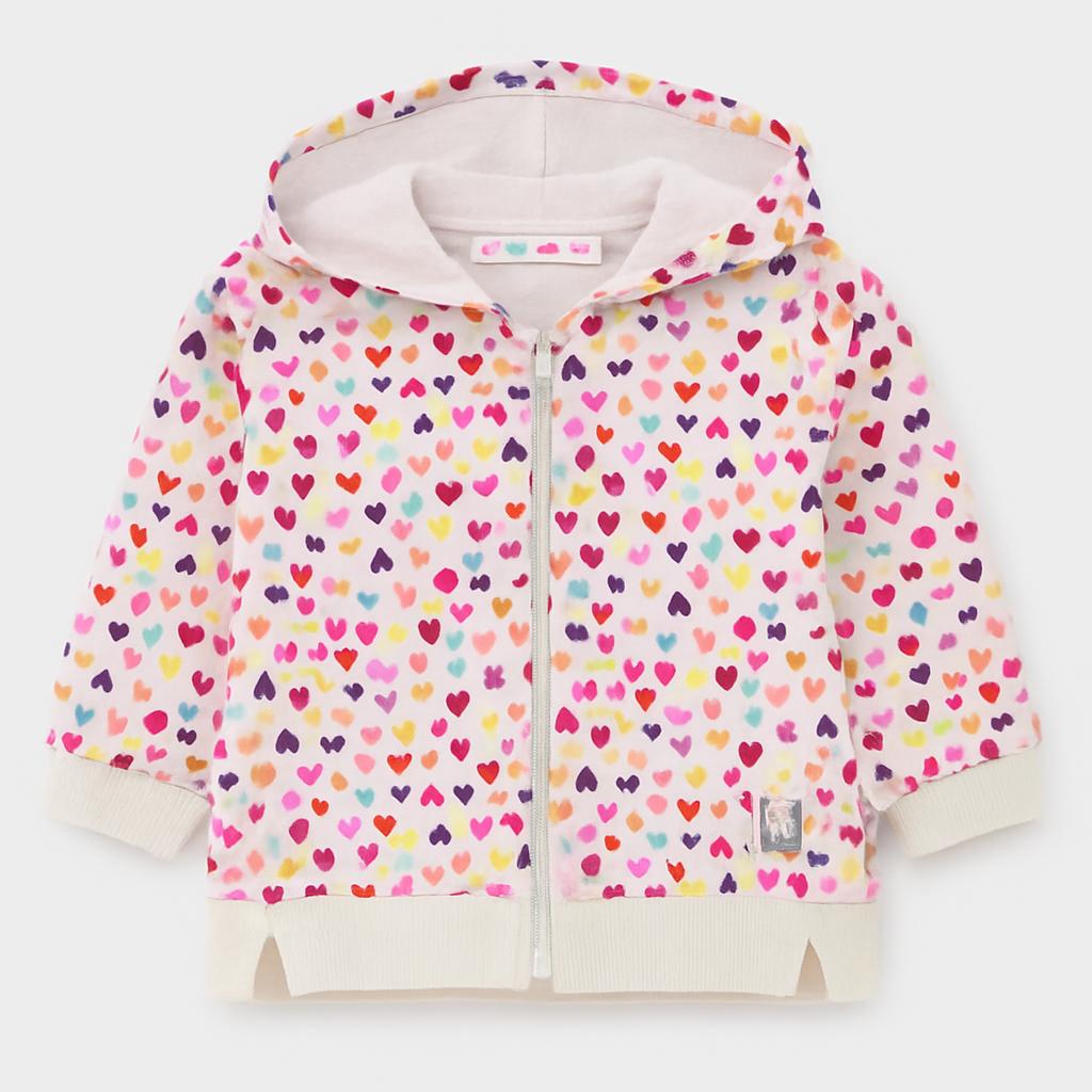 Questo maglioncino con cappuccio è un vero gioiellino per le piccole! Realizzato in morbido cotone, presenta un delizioso motivo di cuori colorate che aggiunge un tocco di allegria e dolcezza. La chiusura con zip permette di indossarlo facilmente, mentre il bordo morbido e le fessure laterali garantiscono comfort durante il gioco. Nonostante sia un capo usato, si presenta in ottime condizioni ed è perfetto per le fresche giornate primaverili o autunnali. Un'ottima scelta per far sentire la tua bimba alla moda e coccolata!