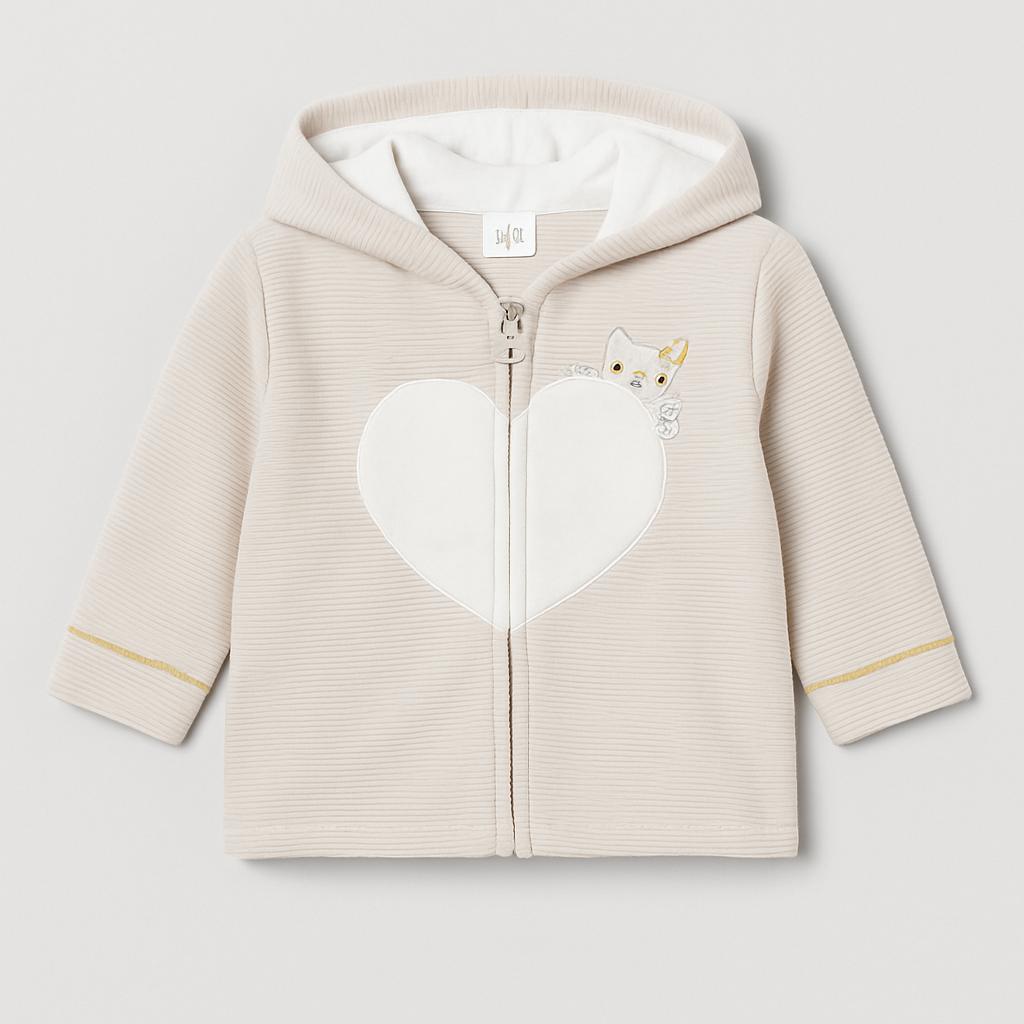 Questo adorabile giubbottino con cappuccio è un vero tesoro per i più piccoli! Realizzato in morbido tessuto dai delicati toni neutri, presenta una simpatica applicazione a forma di cuore sul fronte, arricchita da dettagli scintillanti. Le maniche lunghe e il design pratico lo rendono perfetto per le fresche giornate primaverili o autunnali. Facile da indossare e abbinare, questo capo usato è in ottime condizioni e pronto a vestire il tuo bambino con dolcezza e stile. Un must-have per un look coccoloso e alla moda!