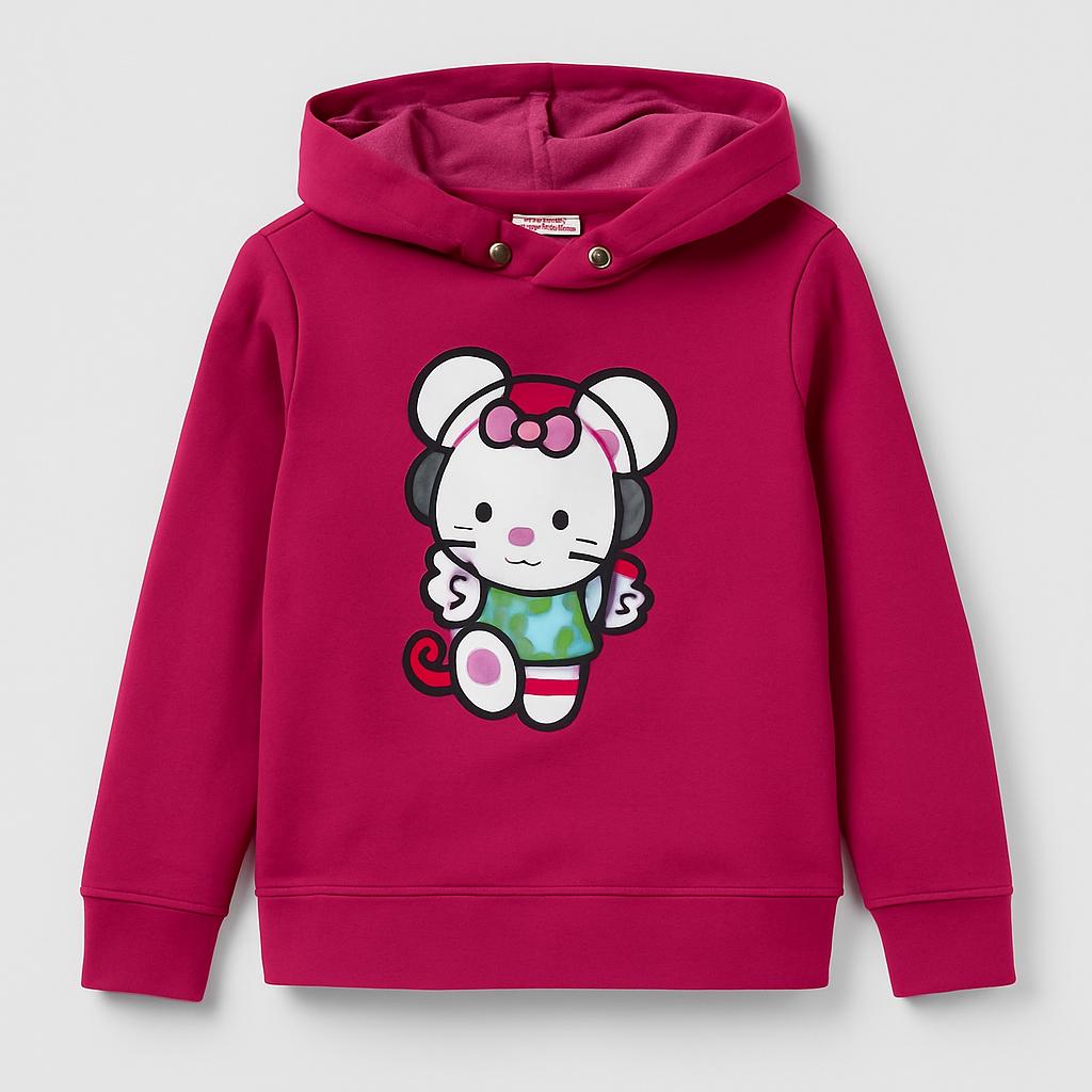 Questa dolce felpa con cappuccio color fucsia è perfetta per le piccole amiche della moda! Decorata con un adorabile personaggio di topo, la felpa trasmette un messaggio di allegria e spensieratezza. Realizzata in un morbido e caldo tessuto, offre comfort e praticità per ogni avventura. Il cappuccio la rende ideale per le fresche giornate primaverili, mentre il suo design giocoso assicurano un look trendy. Anche se è un capo di seconda mano, si presenta in ottime condizioni, pronta per essere indossata da un'altra piccola protagonista! Un must-have per le ragazze che amano esprimere il proprio stile divertente!