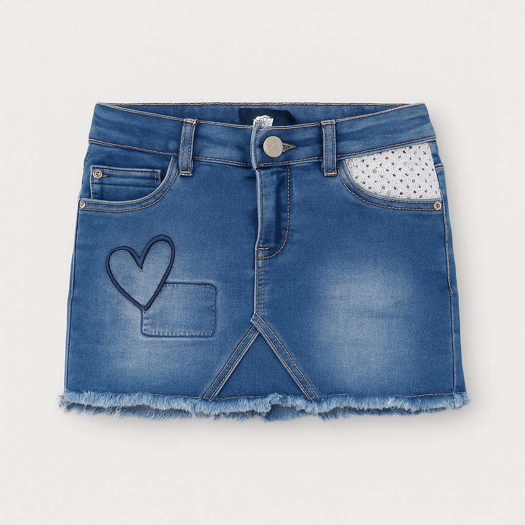 Questa adorabile gonna in denim è un capolavoro di stile per le piccole fashioniste! Caratterizzata da un fresco lavaggio azzurro, presenta dettagli come un cuore ricamato e una tasca in pizzo che aggiungono un tocco di dolcezza. Il design con orlo sfrangiato rende il pezzo perfetto per ogni avventura estiva. Leggera e comoda, è ideale per completare look giocosi. Anche se usata, è in ottime condizioni e pronta a fare colpo nel guardaroba della tua bimba! Una scelta irresistibile per chi ama esprimere la propria personalità!