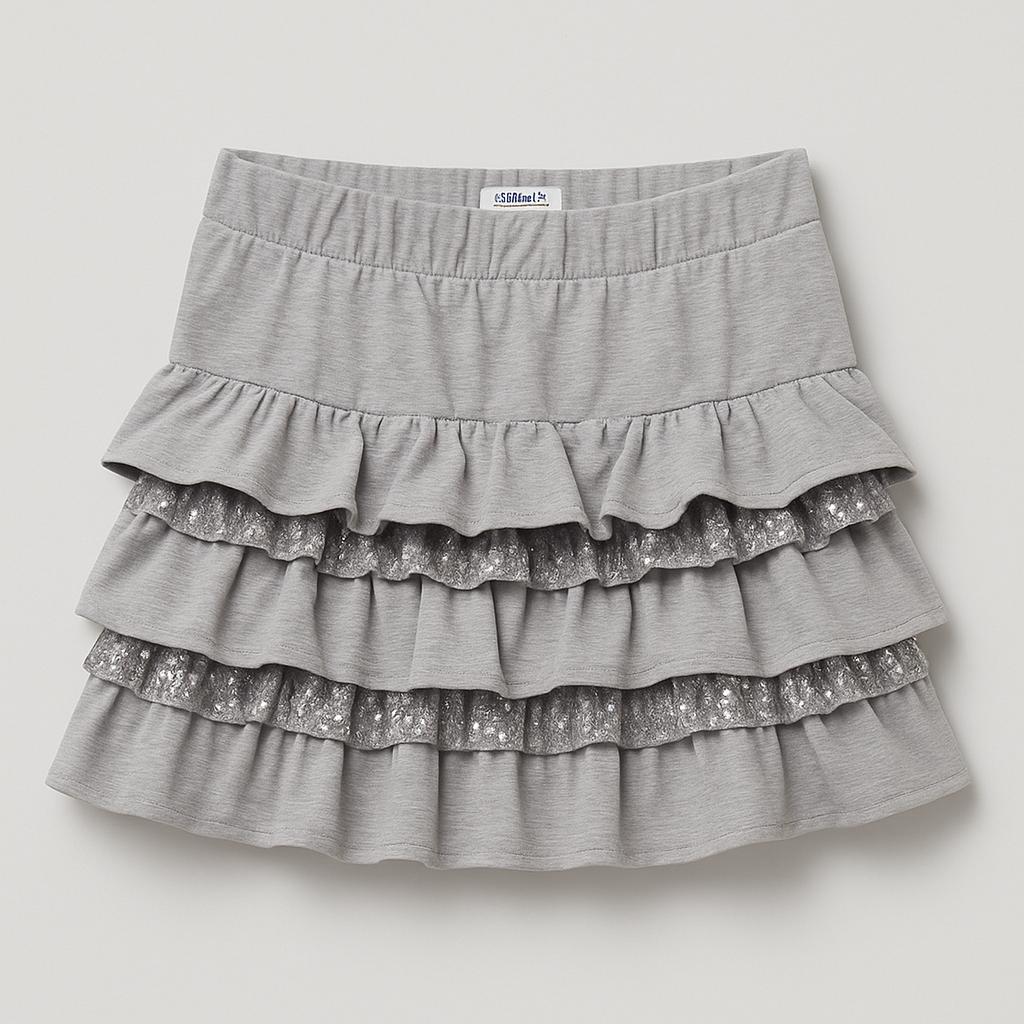 Questa adorabile gonna grigia è perfetta per le piccole fashioniste che amano sfoggiare il proprio stile! Realizzata in morbido cotone, presenta un design con volants a strati e dettagli scintillanti che catturano l'attenzione. Ideale per giochi e uscite, questa gonna è versatile e comoda. Nonostante sia un capo usato, è in ottime condizioni e pronta per nuove avventure! Aggiungi un tocco di allegria al guardaroba della tua bimba con questa gonna frizzante!