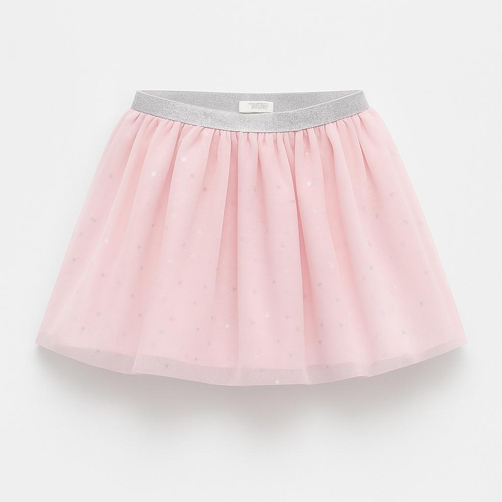 Questa adorabile gonna di tulle rosa è un sogno per ogni piccola principessa! Leggera e vaporosa, presenta un delizioso elastico argentato in vita che aggiunge un tocco scintillante. Decorata con delicati punti luce, questa gonna è perfetta per ballare e giocare. Nonostante sia un capo usato, mantiene il suo fascino e si adatta magnificamente a qualsiasi occasione. Ideale per look da festa o giochi romantici nel parco, farà sentire ogni bambina come una star!