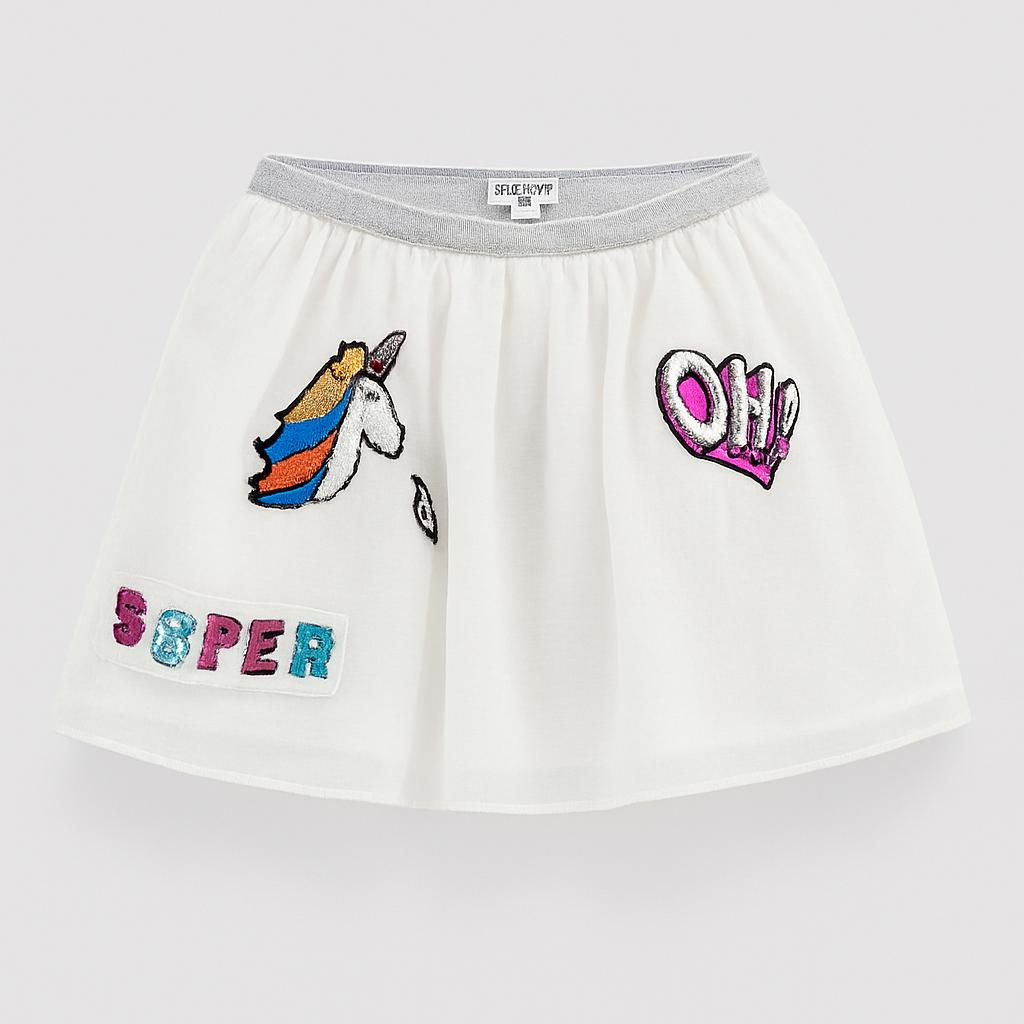 Scopri questa adorabile gonna per bambine, perfetta per dare un tocco di magia a ogni look! Realizzata in un leggero tessuto bianco, è abbellita da scintillanti applicazioni colorate che raccontano storie di avventure. Le scritte "SUPER" e le farfalle rendono questo capo unico e pieno di personalità. Con un taglio ampio e una comoda vita elastica, la gonna è ideale per ballare e divertirsi. Anche se usata, si presenta in ottime condizioni, pronta per accompagnare la tua piccola in tutte le sue fantastiche avventure!