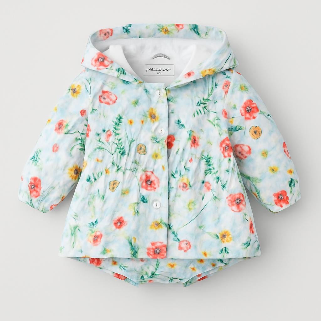 Questa deliziosa giacca impermeabile è perfetta per le giornate di pioggia e per le avventure all'aperto! Decorata con un vivace motivo floreale, porta un tocco di allegria anche nei giorni grigi. La leggera fodera interna mantiene il calore, mentre il cappuccio con bottoni protegge le orecchie dalle intemperie. Le maniche raglan e il taglio comodo offrono libertà di movimento, rendendola ideale per giocare e scoprire il mondo. Nonostante sia un capo usato, è in ottime condizioni e pronto a far brillare il guardaroba del tuo piccolo! Un must-have per ogni piccola esploratrice!