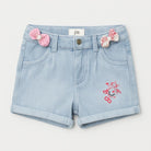 Questi adorabili pantaloni corti in denim non possono mancare nel guardaroba estivo della tua piccola! Caratterizzati da un fresco lavaggio chiaro, presentano un ricamo romantico che aggiunge un tocco di dolcezza. Le graziose arricciature sui lati sono un dettaglio chic che rende questi shorts davvero unici.