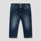 Questi jeans chic e pratici sono l'aggiunta perfetta al guardaroba del tuo bambino! Realizzati in denim di alta qualità, presentano una bella tonalità di blu scuro che si abbina facilmente a qualsiasi outfit. Con una vestibilità comoda e un taglio moderno, sono ideali per le avventure quotidiane, dalla scuola ai giochi all'aperto. I dettagli come le tasche frontali e la chiusura con bottone aggiungono un tocco di stile senza tempo. Nonostante siano usati, sono in ottime condizioni e pronti a vivere nuove avventure con il tuo piccolo! Un capo versatile che non può mancare!