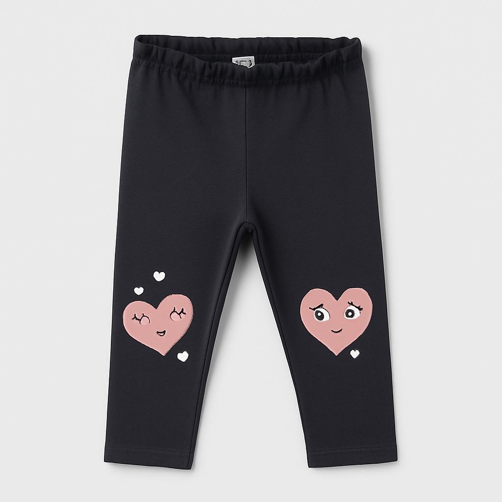 Questi adorabili leggins neri sono il complemento perfetto per il guardaroba della tua piccola! Realizzati in morbido cotone, assicurano comfort e libertà di movimento. Le simpatica applicazione di cuori rosa su entrambe le gambe aggiunge un tocco dolce e giocoso, rendendo questi leggings ideali per ogni occasione. L'elastico in vita garantisce una vestibilità comoda, perfetta per le avventure quotidiane o per una giornata di gioco. Nonostante siano un capo usato, si presentano in ottime condizioni. Un must per le piccole amanti dello stile e del comfort!