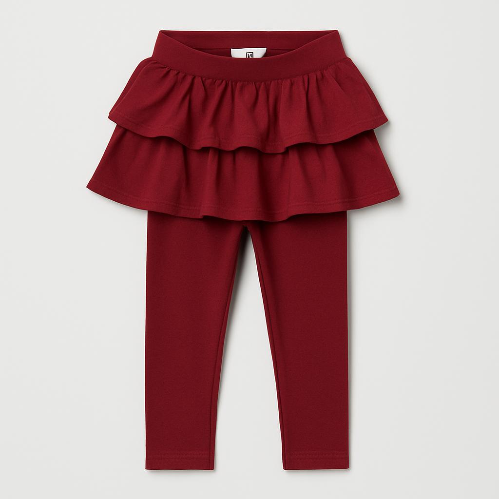 Questa adorabile combinazione di leggings e gonna è perfetta per le piccole trendsetter! I leggings in morbido cotone di un bel color bordeaux offrono comfort e libertà di movimento. La gonna sovrapposta, sempre in tonalità bordeaux, è arricchita da affascinanti volanetti che aggiungono un tocco di femminilità e allegria. Ideale per ogni occasione, da una passeggiata nel parco a un pomeriggio di giochi, questo set si presenta in ottime condizioni ed è pronto a far brillare il guardaroba della tua bambina! Un must-have per chi ama giocare con stile!