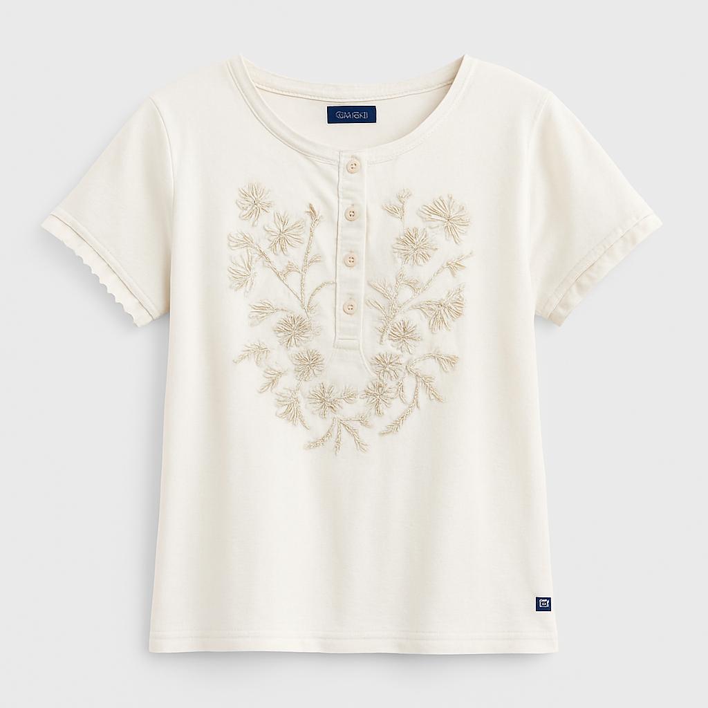 Questa deliziosa t-shirt bianca in cotone è un perfetto alleato per il guardaroba delle tue piccole! Con un elegante ricamo floreale che decora il fronte, aggiunge un tocco di freschezza e delicatezza ad ogni outfit. I bottoni sulla scollatura e le maniche rifinite con leggeri froncetti donano un aspetto romantico e trendy, ideale per occasioni speciali o per giornate di gioco. Nonostante sia un capo usato, si presenta in ottime condizioni e pronta per nuove avventure! Un must-have per le bambine che amano esprimere il loro stile unico!