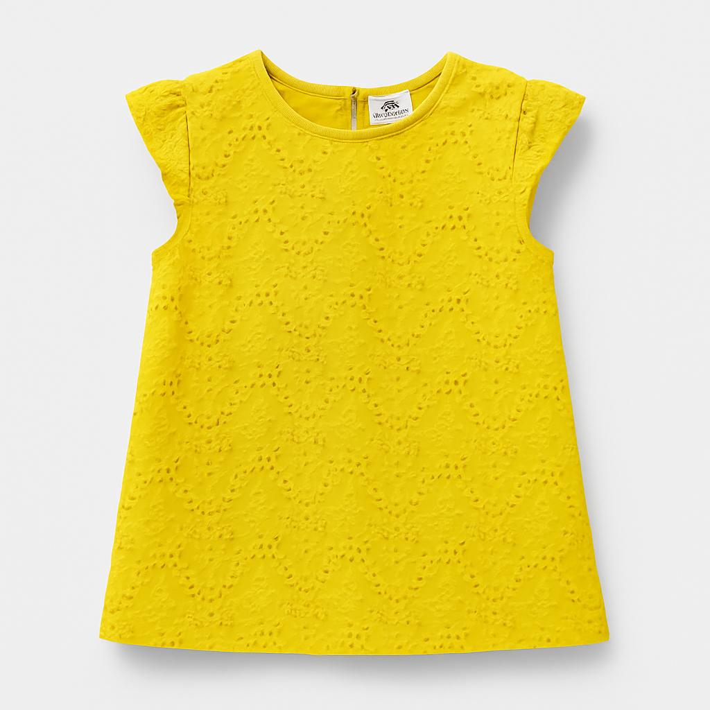 Questa adorable blusa gialla è un vero raggio di sole nel guardaroba della tua piccola! Realizzata in cotone leggero e traspirante, presenta una delicata lavorazione a fiori che le conferisce un tocco romantico e originale. I soffici volant sulle spalle aggiungono un elemento di dolcezza, rendendola perfetta per ogni occasione, dalle feste in giardino ai giochi estivi. Nonostante sia un capo usato, si presenta in ottime condizioni, pronto a far brillare gli occhi delle più piccole. Un must-have per le fashioniste in erba!