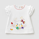 Questa adorabile t-shirt bianca è perfetta per le piccole amanti degli animali! Con le sue maniche a volant che donano un tocco romantico, presenta un dolce motivo di gattino decorato con cuori e dettagli colorati. Realizzata in morbido cotone, è ideale per i giochi e le avventure quotidiane. Perfetta per un look fresco e giocoso, questa maglietta usata è in buone condizioni e pronta per essere indossata da una piccola esploratrice! Un capolavoro che aggiunge allegria al guardaroba di ogni bambina.