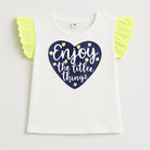 Questa deliziosa t-shirt bianca con maniche a sbuffo è perfetta per le piccole sognatrici! La scritta “Enjoy the little things” incorniciata da un cuore colorato invita a divertirsi e a godere di ogni momento. Le maniche in pizzo verde fluo aggiungono un tocco di originalità e freschezza, rendendo questo capo ideale per ogni occasione estiva. Nonostante sia usata, la maglietta è in ottime condizioni e pronta a far sorridere chi la indossa. Un must-have per le piccole che amano brillare con stile!