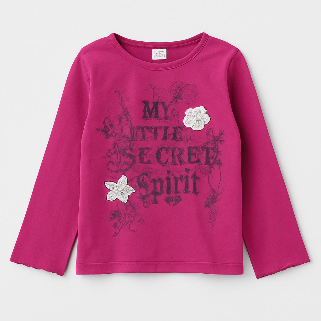 Questa incantevole maglietta fucsia è perfetta per le piccole pioniere del gusto! Con maniche a campana e un design unico, presenta una scritta decorativa “My little rock spirit” accompagnata da fiori stilizzati che aggiungono un tocco di originalità. Realizzata in morbido cotone, risulta comoda da indossare, ideale per giochi e avventure quotidiane. Nonostante sia un capo usato, si presenta in ottime condizioni, pronta per essere sfoggiata da un’anima spiaggiosa e creativa! Un pezzo unico che illuminerà il guardaroba della tua piccola!