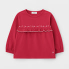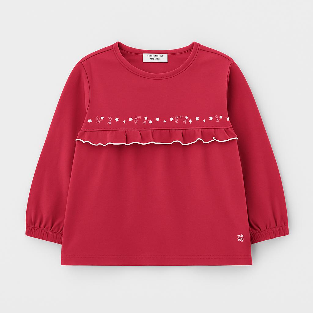 Questa deliziosa maglietta rossa di marca Benetton è perfetta per le piccole sognatrici! Realizzata in morbidissimo cotone, presenta un grazioso volant e una delicata decorazione floreale sul davanti, che aggiunge un tocco di dolcezza. Le maniche lunghe la rendono ideale per ogni stagione, mantenendo calde le piccole mentre giocano o si divertono in compagnia. Nonostante sia un capo usato, si presenta in ottime condizioni, pronta per essere indossata in ogni occasione. Una scelta adorabile per un look casual e trendy!