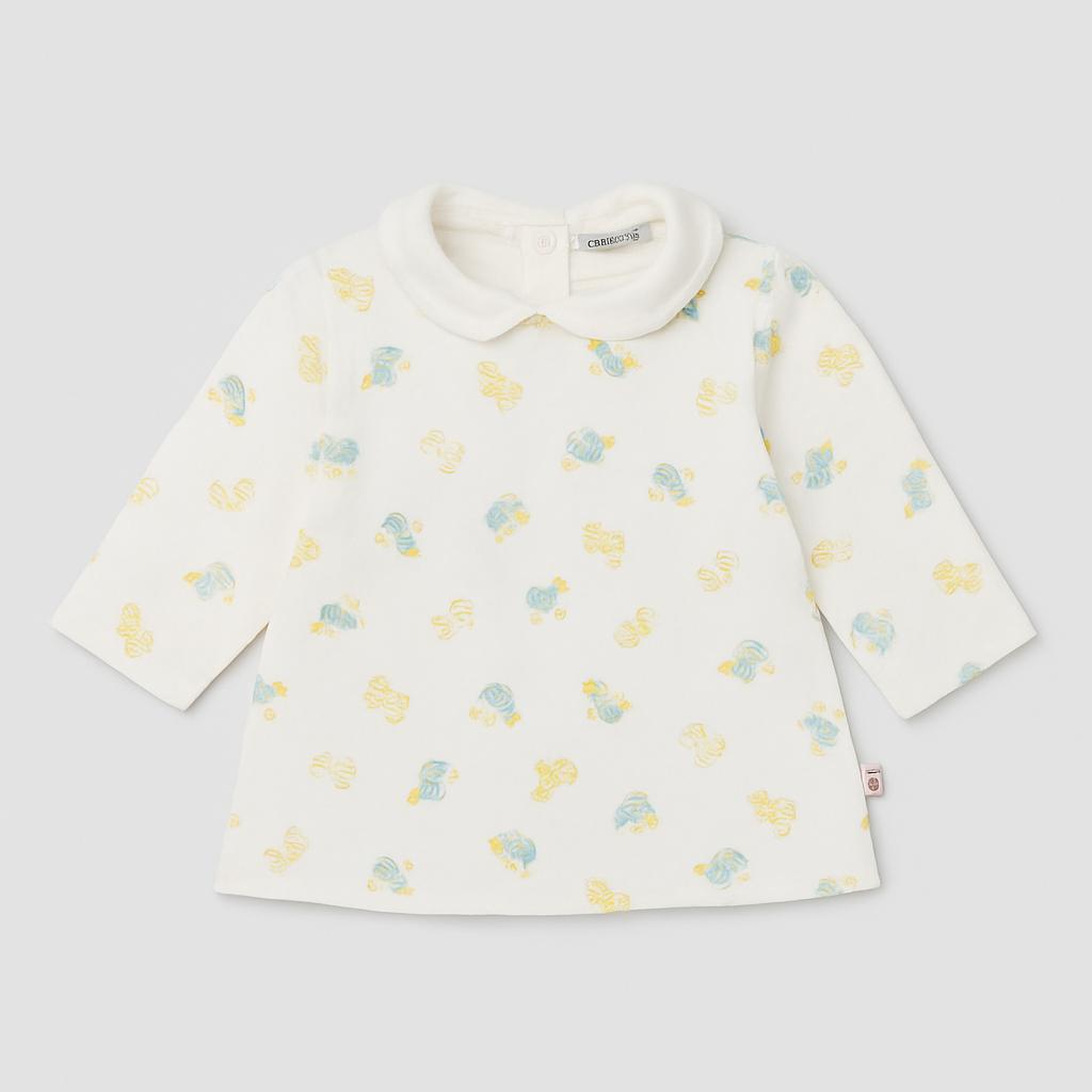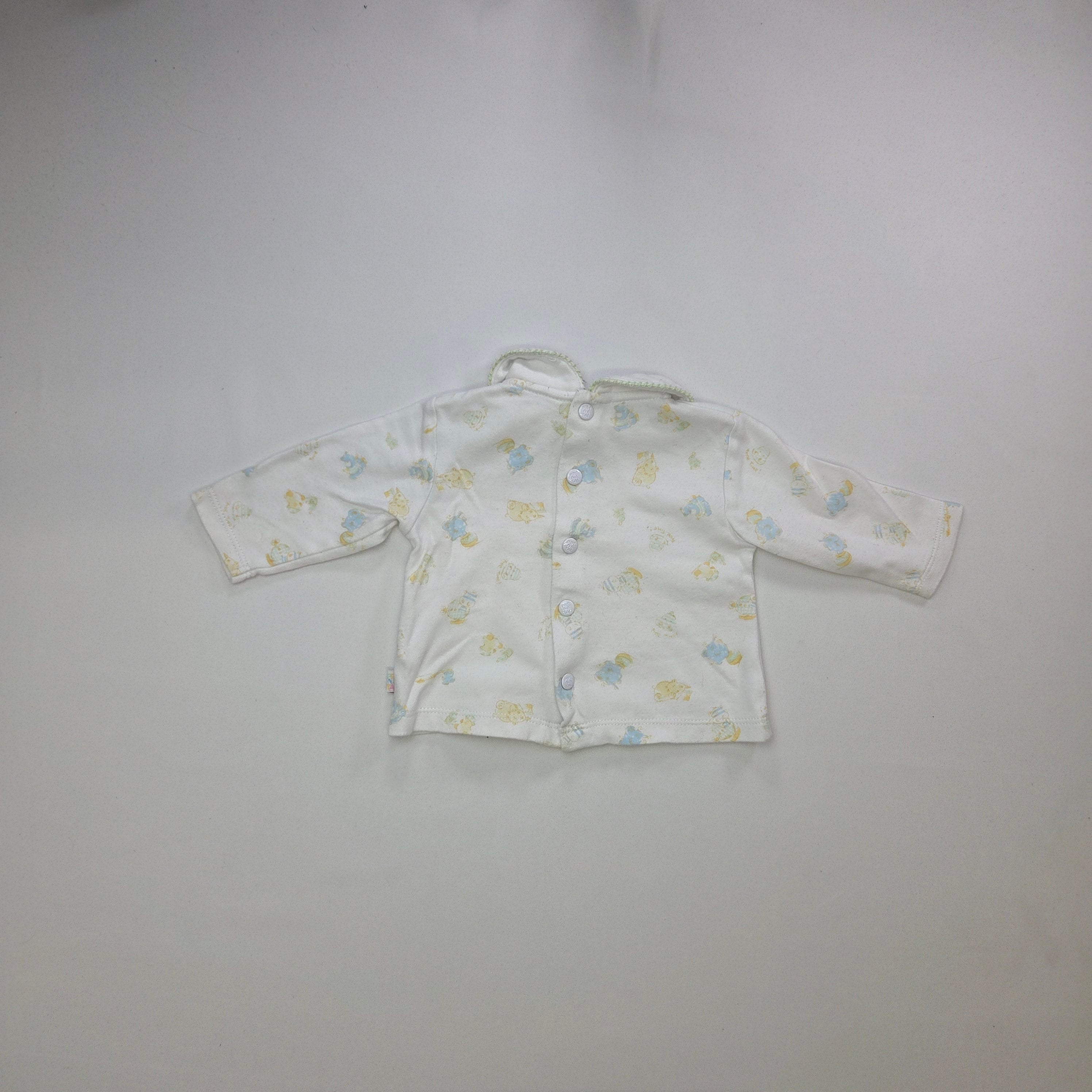 Questa adorabile maglietta a maniche lunghe è perfetta per i più piccoli! Realizzata in morbido cotone bianco, è decorata con teneri disegni di animaletti nei toni del giallo e del blu, che la rendono giocosa e affascinante. Il colletto morbido aggiunge un tocco di eleganza e comfort, mentre il taglio pratico è ideale per le avventure quotidiane. Anche se è un capo usato, si presenta in ottime condizioni, pronta a essere indossata dalle piccole pesti. Perfetta per tenere il tuo bambino caldo e alla moda!