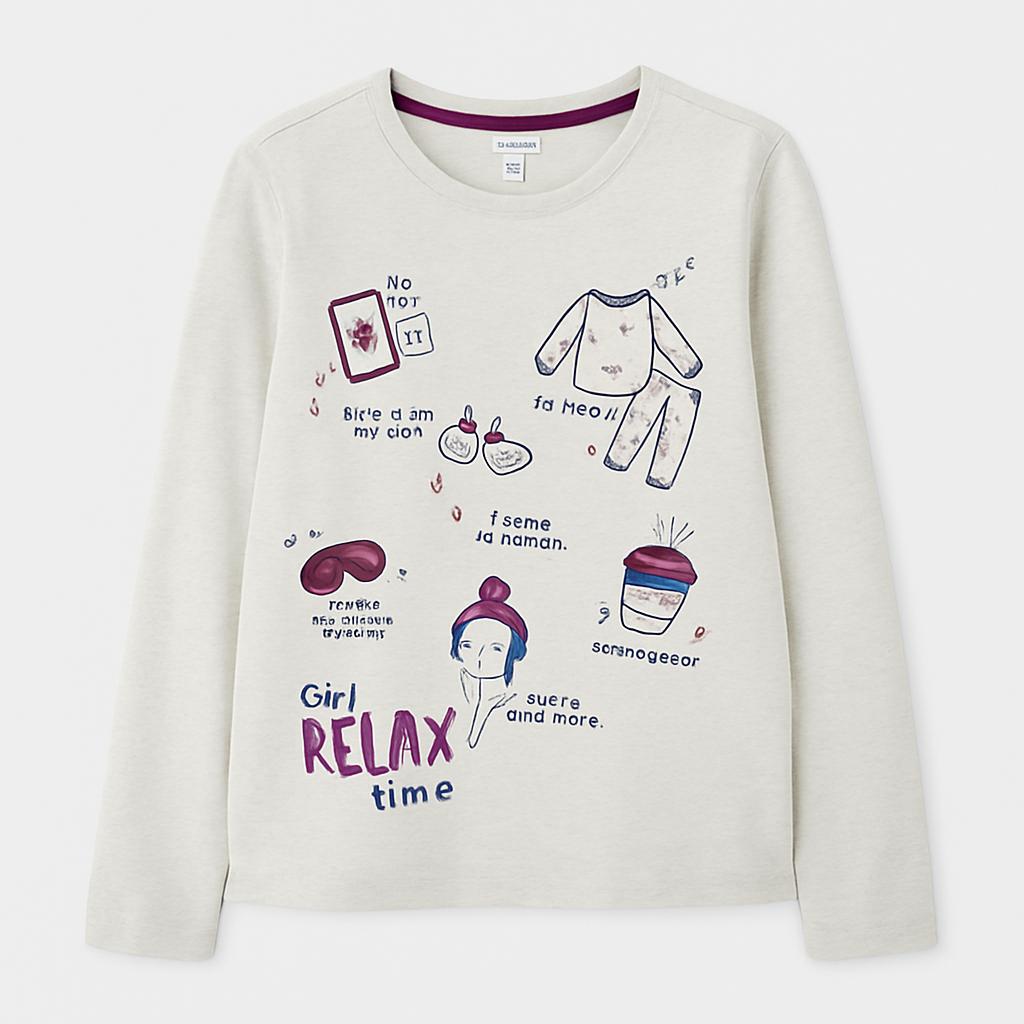 Questa simpatica felpa lunga manica è perfetta per le piccole dreamer! Realizzata in morbido cotone grigio, è decorata con grafiche divertenti che raccontano le attività di una vera girl boss. Dalle pizze ai pigiami, ogni disegno trasmette un messaggio di relax e buonumore. Con il suo taglio comodo e le maniche ampie, è ideale per giornate di relax a casa o avventure con le amiche. Sebbene sia un capo usato, è in ottime condizioni, pronto per regalare comfort e stile alla tua piccola! Un must-have per le mini trendsetter!