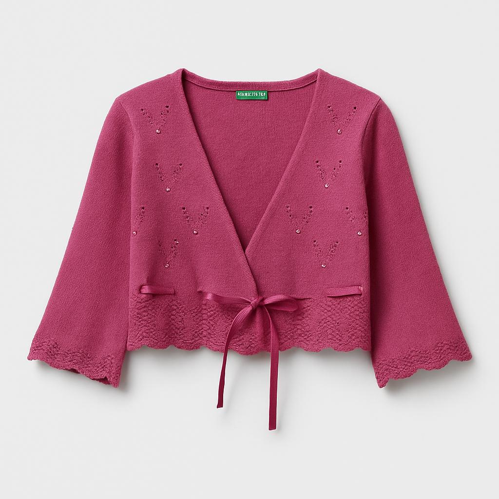 Questo adorabile cardigan rosa è un capo perfetto per aggiungere un tocco di dolcezza al guardaroba della tua piccola! Realizzato in un caldo materiale, presenta delicati ricami e perline, rendendolo sofisticato e romantico. Le maniche a campana e il taglio leggermente svasato donano un'aria bohemien, ideale per ogni occasione, dalle feste alle uscite casual. La chiusura con fiocco lo rende sia pratico che stiloso, perfetto per completare outfit anche più eleganti. Anche se usato, è in ottime condizioni e pronto a far brillare il sorriso della tua fashionista!
