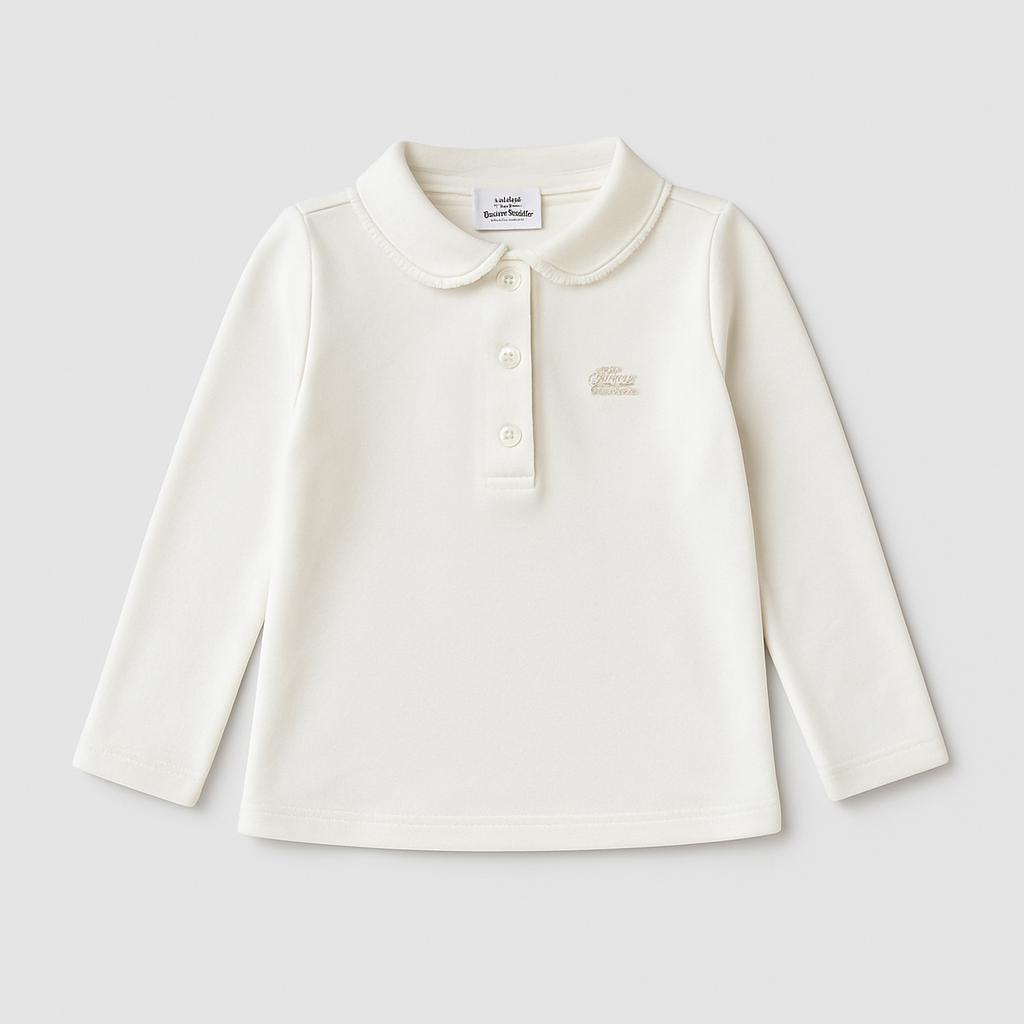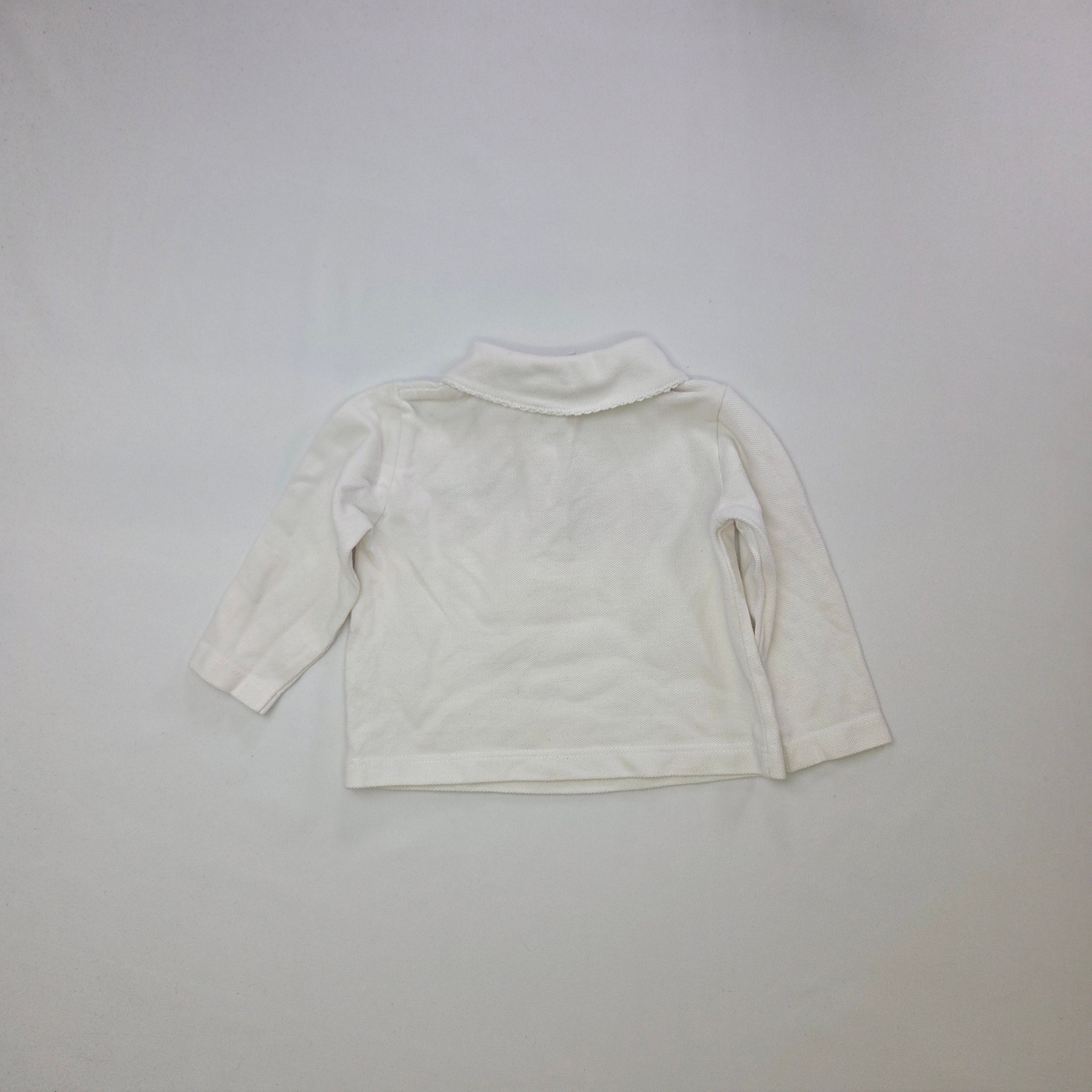 Questa dolcissima polo bianca per bambini è un classico intramontabile! Realizzata in morbido cotone, presenta una colletto elegante e maniche lunghe, perfetta per le giornate fresche. Decorata con un delicato ricamo sul petto, aggiunge un tocco di raffinatezza al look del tuo piccolo. Essendo un capo usato, mostra un lieve fascino vintage, senza compromettere la qualità. Ideale per abbinamenti casual o occasioni speciali, questa polo è un must-have nel guardaroba di ogni bambino. Rendi il suo look unico e elegante!
