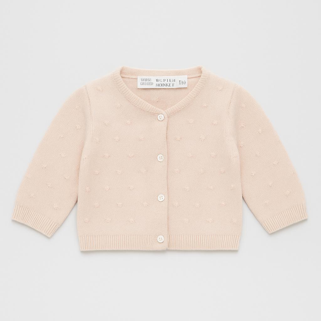 Questo dolce cardigan in tonalità pesca è l'ideale per le piccole pesti! Realizzato in morbido cotone, presenta una delicata lavorazione a punto mezzopunto che aggiunge un tocco di eleganza. Con le sue maniche lunghe e il taglio comodo, è perfetto per chiudere i freschi pomeriggi primaverili o per le serate estive. Le pratiche bottoncini sul davanti rendono facile indossarlo e toglierlo. Nonostante sia un capo usato, si trova in ottime condizioni, pronto per accompagnare ogni avventura della tua piccola! Un'aggiunta essenziale per qualsiasi guardaroba infantile!