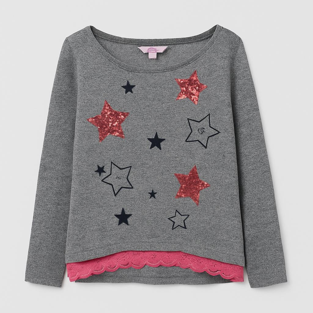 Questo incantevole maglione grigio offre un perfetto mix di comfort e stile! Con il suo design adorabile, è decorato da stelle scintillanti in paillettes rosse e dettagli neri, che aggiungono un tocco di magia. La gonna in pizzo rosa sul fondo crea un contrasto delicato e femminile, rendendolo ideale per le piccole star che vogliono brillare. Perfetto per le giornate più fresche, questo maglioncino usato è in buone condizioni e pronto per accompagnare ogni avventura di moda delle vostre bambine!