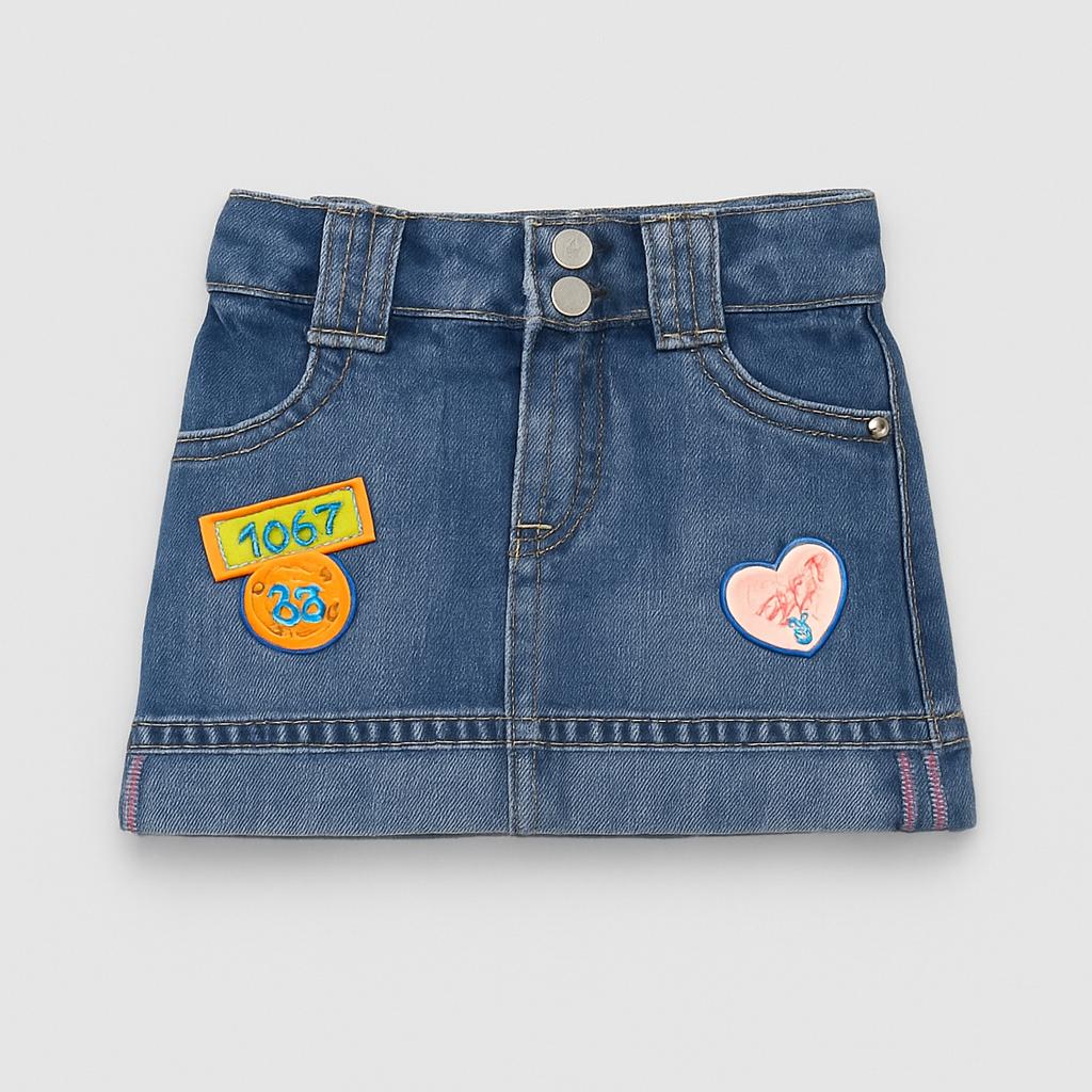 Questo adorabile gonnellino in denim è un vero classico per le piccole fashioniste! Caratterizzato da un vivace blu jeans, è impreziosito da decorazioni colorate e patch che aggiungono un tocco di originalità. Con la sua vita regolabile e il taglio svasato, è perfetto per giocare e muoversi con libertà. Ideale da abbinare a t-shirt o bluse, è un capo versatile per ogni occasione. Nonostante sia usato, si trova in ottime condizioni e porterà un sorriso nel guardaroba della tua piccola!