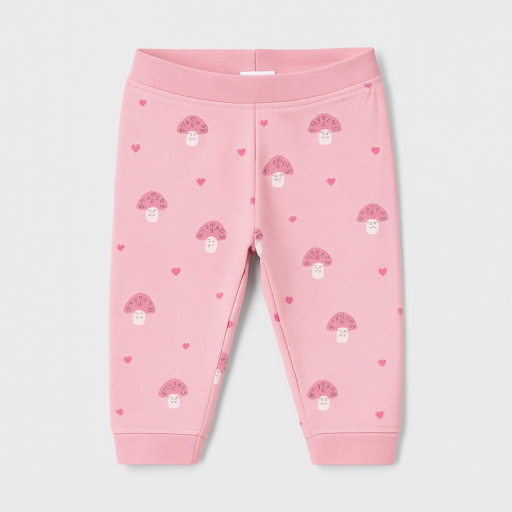 Questi adorabili pantaloni pinko faranno innamorare le piccole esploratrici! Realizzati in morbido cotone, presentano una dolce stampa di funghi e cuoricini che porta un sorriso. Il tessuto leggero e traspirante è perfetto per le giornate di gioco, mentre l'elastico in vita garantisce un comfort impeccabile. Nonostante siano usati, conservano ancora la loro freschezza e vivacità. Ideali per una giornata al parco o per momenti di relax a casa, questi pantaloni sono un must nel guardaroba di ogni bambina!