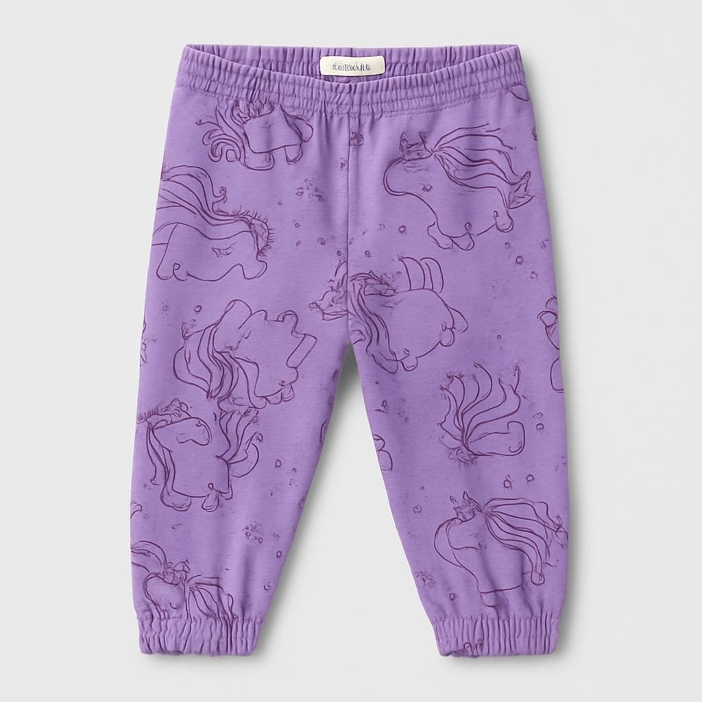 Questi adorabili pantaloni in morbido cotone violetto sono perfetti per le piccole sognatrici! Decorati con simpatici unicorni e stelle scintillanti, porteranno un tocco di magia nel guardaroba. Con una comoda vita elastica e orli arricciati, offrono libertà di movimento per correre, giocare e divertirsi. Nonostante siano usati, sono in ottime condizioni e pronti per accompagnare ogni avventura. Un capo must-have per le piccole fashioniste che amano esprimere il loro stile unico e colorato!
