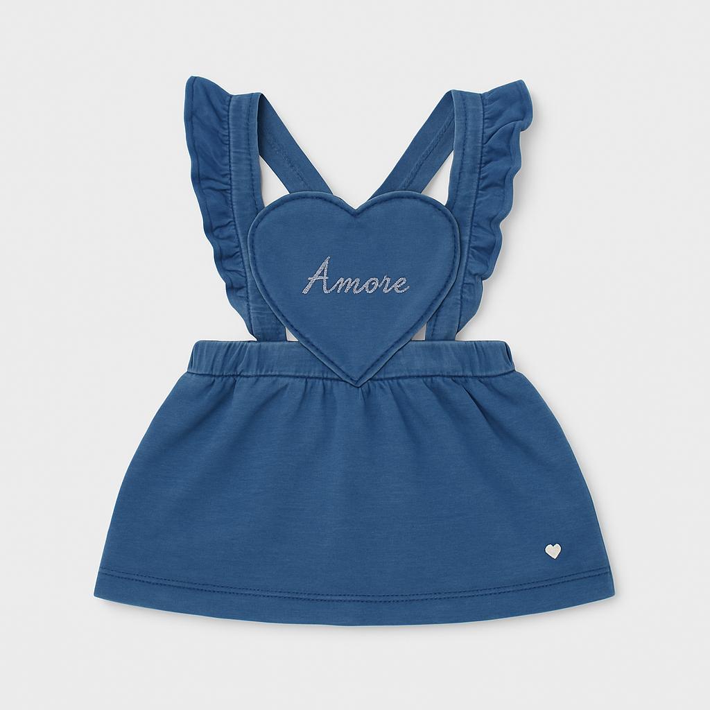 Questo adorabile vestitino in denim è perfetto per le piccole sognatrici! Con le sue spalline incrociate e i delicati volant, questo abito spicca per il dolce cuore ricamato sul petto, con la scritta "Amore". Il taglio svasato lo rende comodo per muoversi e giocare liberamente. Nonostante sia un capo usato, presenta un'ottima condizione, pronto a far brillare il guardaroba della tua bambina! Ideale per giornate di sole o occasioni speciali, porterà un sorriso a chi lo indossa e a chi lo guarda!