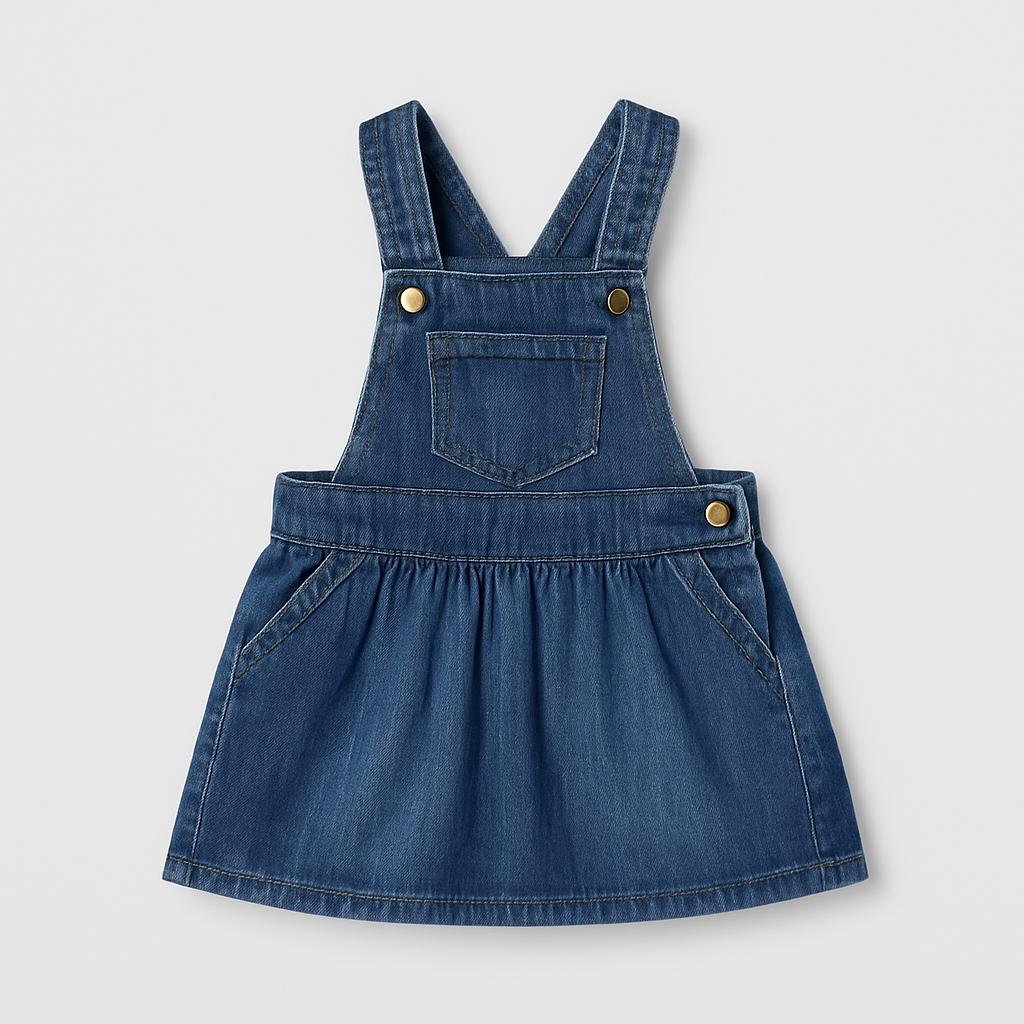 Questo adorabile abito in denim è un vero e proprio passe-partout per le piccole esploratrici! Con i suoi spallini regolabili e una morbida gonna effetto svasato, offre un mix perfetto di comfort e stile. Le tasche anteriori aggiungono un tocco pratico e il denim blu scuro è sempre di tendenza. Ideale per un'uscita in famiglia, giorni al parco o feste di compleanno, questo vestito è perfetto per esprimere la personalità vivace della tua bambina. Usato ma in ottime condizioni, sarà sicuramente un capo amato e apprezzato nel guardaroba!