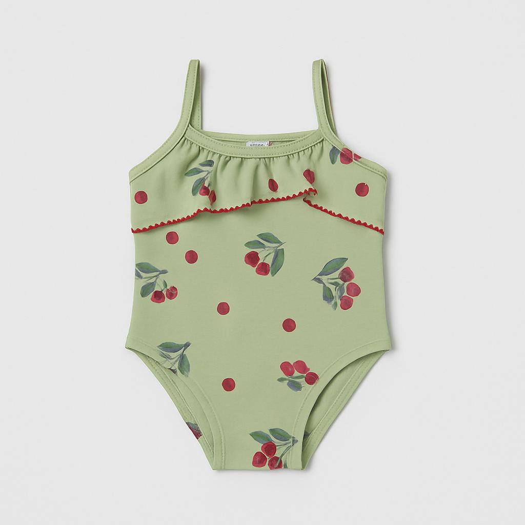 Questo adorabile costume da bagno per bambina è perfetto per le giornate al mare o in piscina! Realizzato in morbido tessuto verde chiaro, presenta una stampa floreale dolcissima con fiori rossi che portano un tocco di vivacità. Il design smanicato è decorato con un frill adorabile, aggiungendo un elemento giocoso e femminile. Gli spallini regolabili assicurano una vestibilità comoda, mentre la possibilità di lavaggio in lavatrice lo rende pratico per l'uso quotidiano. Nonostante sia un capo usato, è in ottime condizioni e pronto a rendere le giornate estive della tua piccola ancora più speciali! Questo costume è stato creato per piccole esploratrici pronte a tuffarsi nella stagione estiva!