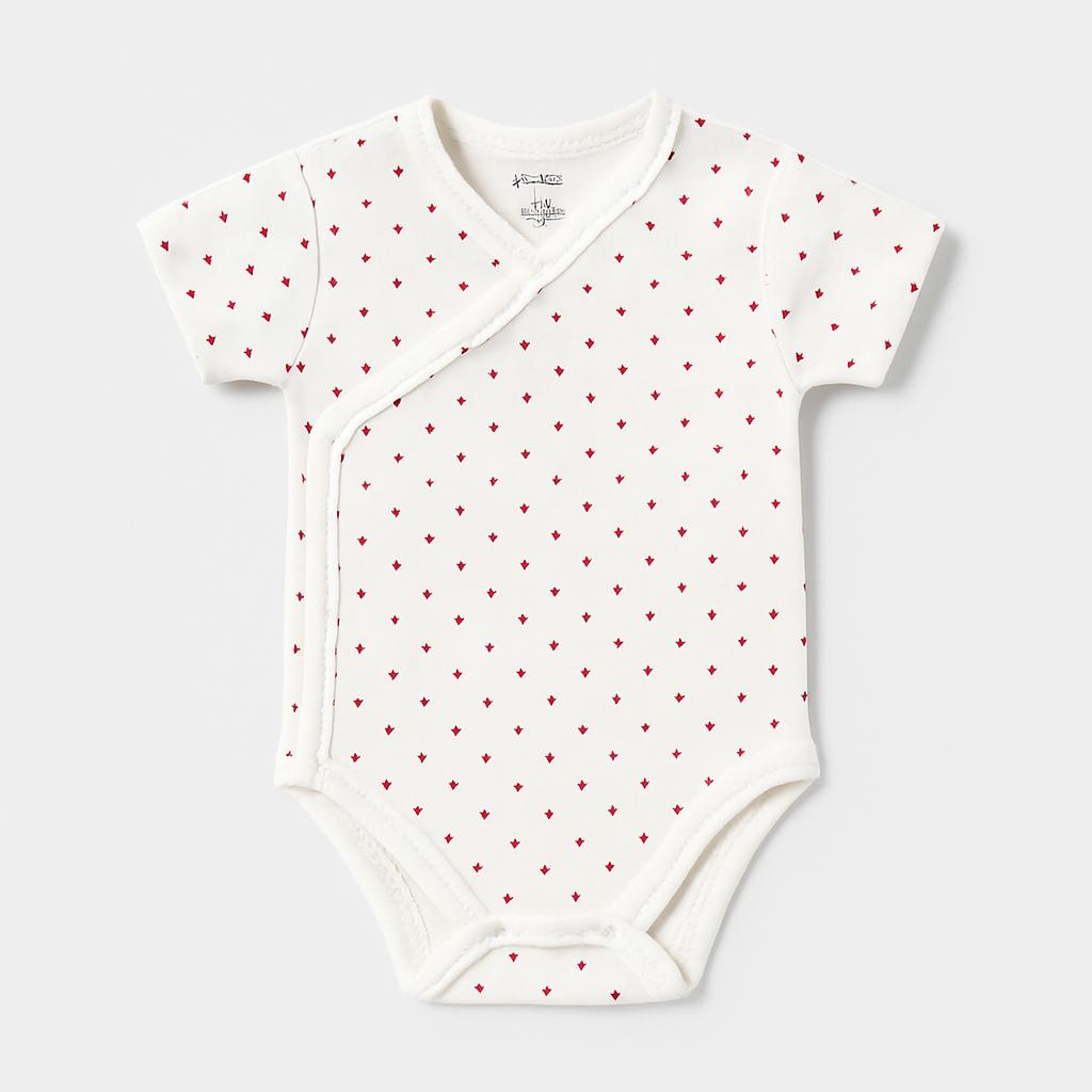 Questo adorabile body per neonati è il compagno perfetto per i primi mesi di vita! Realizzato in un morbido tessuto di cotone, presenta una graziosa fantasia a pois rossi su fondo bianco, che dona un tocco di allegria. La chiusura avvolgente facilita il cambio, rendendolo pratico per i genitori. Le maniche corte e il design comodo assicurano la massima libertà di movimento per il tuo piccolo, ideale per la stagione estiva. Nonostante sia un capo usato, si trova in ottime condizioni, pronto per offrire comfort e stile a un nuovo fortunato bimbo!