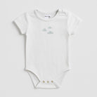 Questo adorabile body bianco è il capo ideale per i più piccoli! Realizzato in morbido cotone, è leggero e delicato sulla pelle. Sul fronte, vanta un grazioso design con nuvolette colorate, che aggiungono un tocco di fantasia e dolcezza. Le maniche corte e la pratica chiusura a scatto facilitano il cambio, rendendolo perfetto per ogni momento della giornata. Nonostante sia un indumento usato, si presenta in ottime condizioni, pronto per accompagnare il tuo bambino in tutte le sue avventure quotidiane. Un capo essenziale e versatile per il guardaroba di ogni bebè!