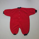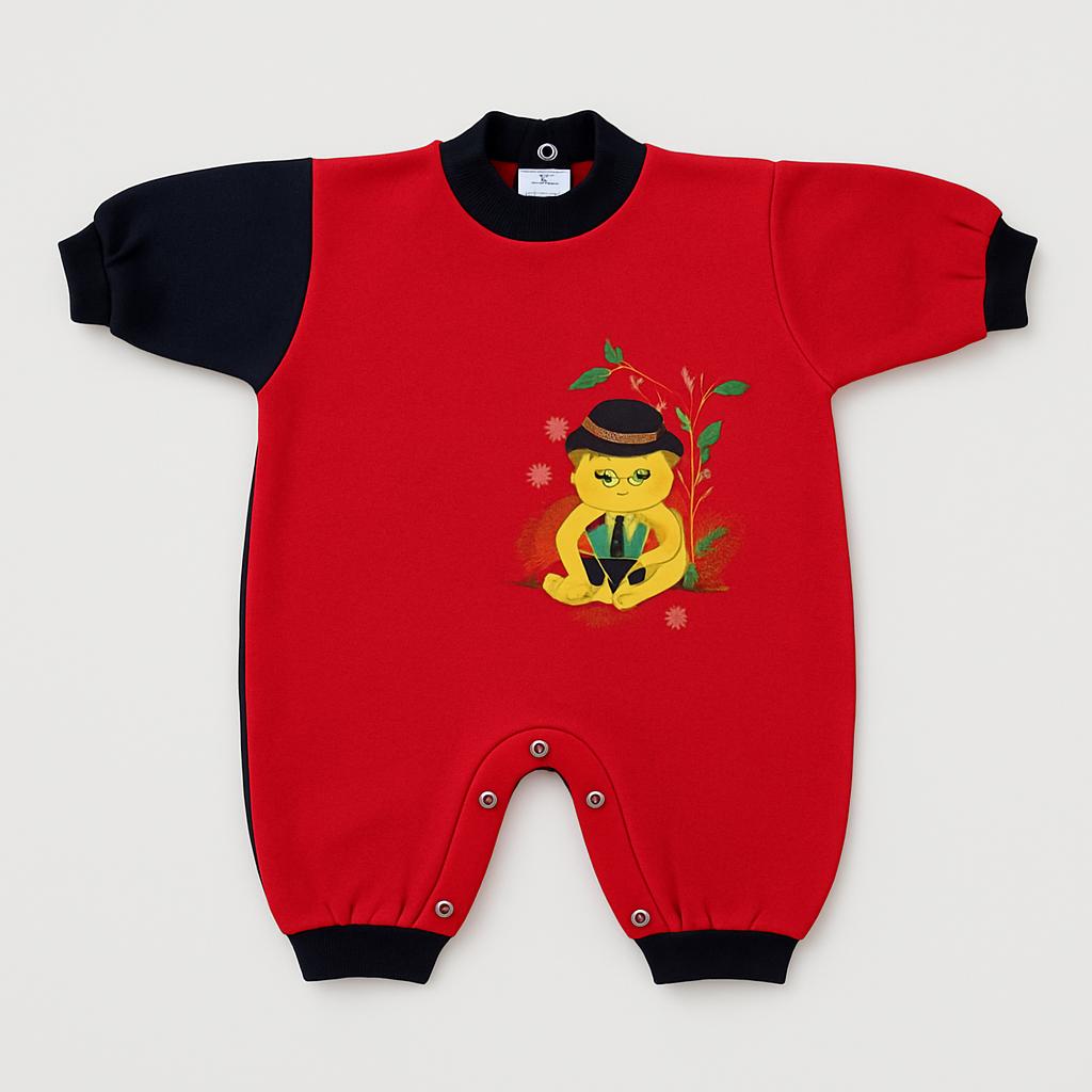 Questo adorabile completino per bambini è un abbraccio di comfort e stile! Realizzato in morbido cotone, combina un vivace rosso e un elegante blu scuro. Sul fronte, un tenero ricamo di un orsetto in miniatura vestito da dandy aggiunge un tocco di dolcezza e fantasia. Le maniche lunghe e il design pratico con bottoni a pressione rendono il cambio veloce e semplice. Perfetto per tener caldo il tuo bimbo durante le giornate fresche, questo tutù è in ottime condizioni e pronto per accompagnare dolci sogni e momenti di gioco!