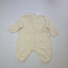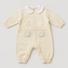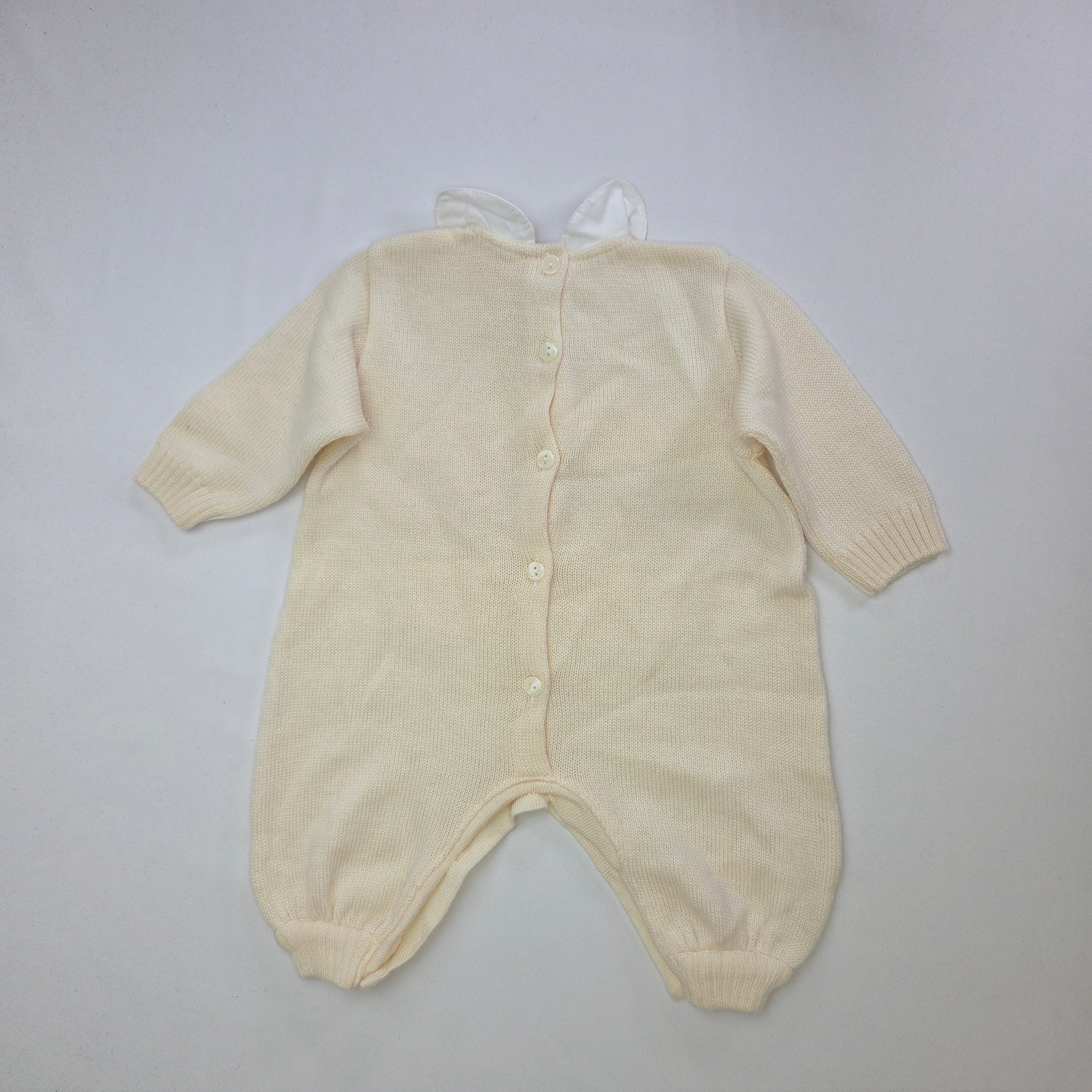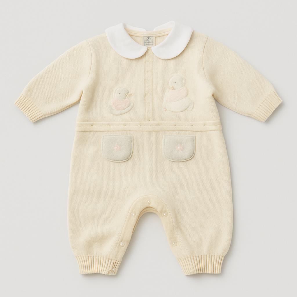 Questo adorabile pagliaccetto per bambini è un vero e proprio abbraccio di morbidezza! In un delicatissimo beige, presenta un colletto bianco a contrasto che aggiunge un tocco elegante. Gli adorabili ricami di teneri animaletti sul petto e le tasche frontali lo rendono ancora più speciale e giocoso. Le maniche lunghe e il tessuto caldo lo rendono perfetto per le giornate fresche, mentre i bottoni sul dorso assicurano una vestibilità semplice e comoda. Nonostante sia un capo usato, si presenta in ottime condizioni, ideale per tenere il tuo piccolo all’insegna dello stile e della tenerezza! Un'opzione perfetta per i momenti speciali e le avventure quotidiane!
