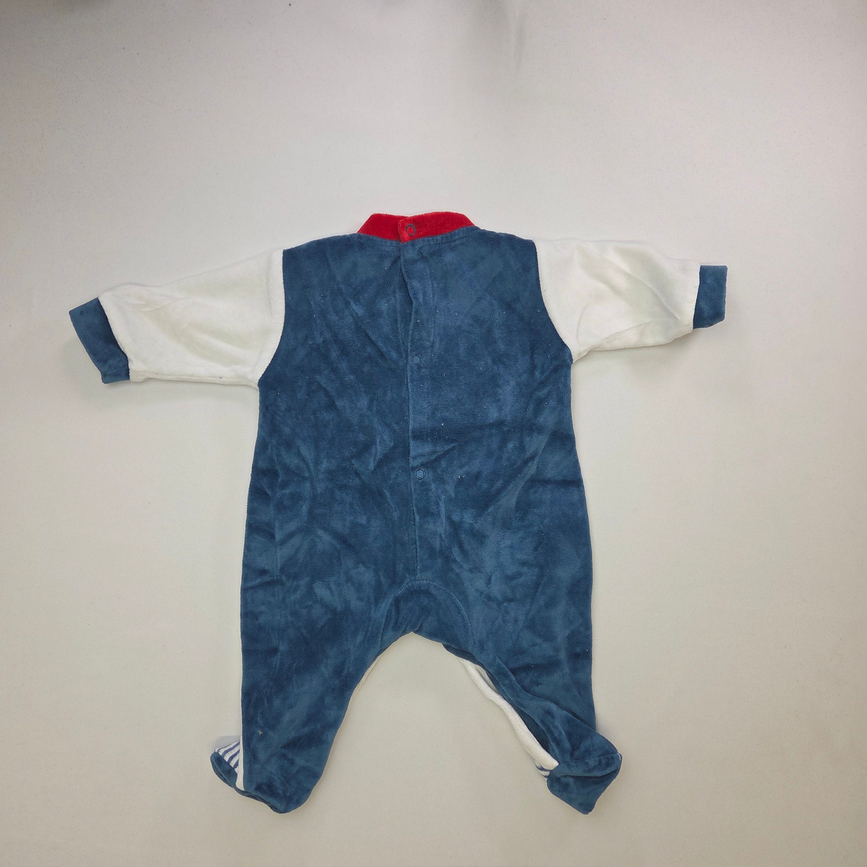 Questo adorabile pagliaccetto bianco è perfetto per i più piccoli! Con un dolce design che rappresenta un orsetto giocoso, è un mix di comfort e stile. Le maniche lunghe e il colletto rosso aggiungono un tocco di colore, mentre le tasche a righe blu sul pantalone offrono un accenno di allegria. Realizzato in morbido cotone, è ideale per il gioco quotidiano e le coccole. Nonostante sia un capo usato, si presenta in ottime condizioni, pronto a far divertire il tuo bambino con un look tenero e divertente!