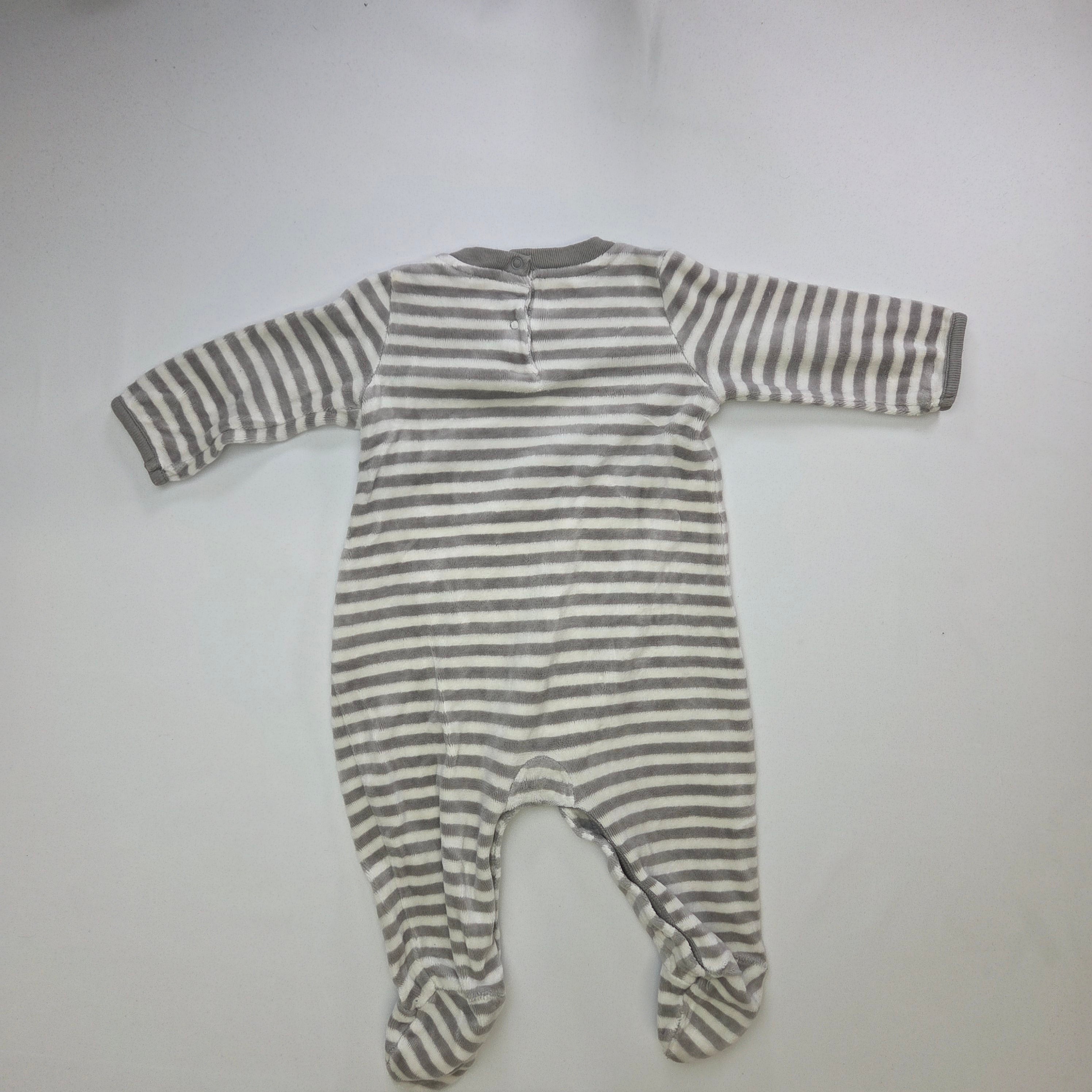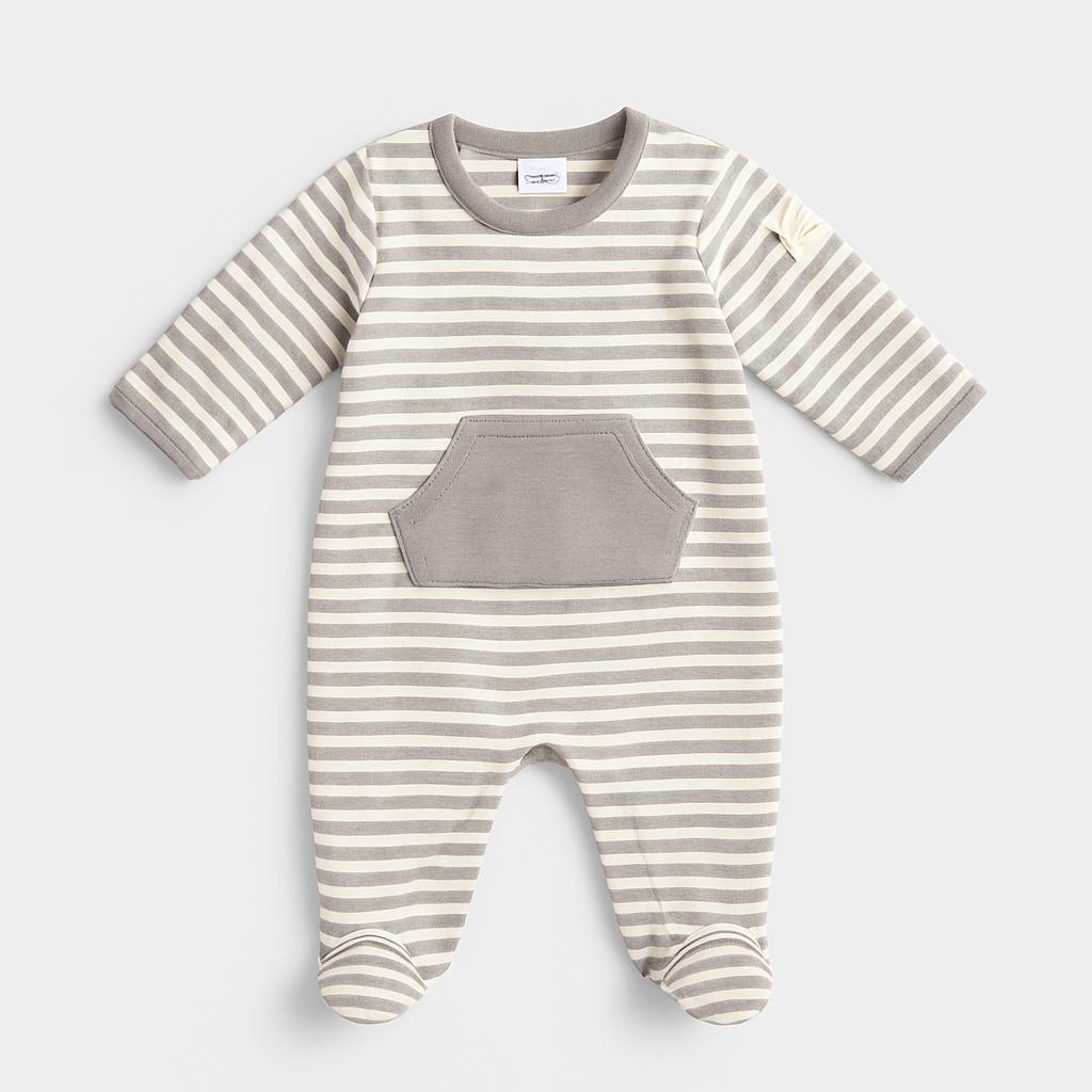 Questo adorabile completino intero a righe è un vero must-have per i più piccoli! Realizzato in morbido cotone, offre comfort e calore in tutte le stagioni. Le righe grigie e beige lo rendono elegante e versatile, perfetto per ogni occasione. La pratica tasca sul davanti aggiunge un tocco di originalità, mentre le maniche lunghe e i piedini assicureranno che il tuo bimbo rimanga al caldo durante i giochi. Anche se usato, si presenta in ottime condizioni, pronto a diventare un compagno di avventure per i tuoi piccoli! Un capo che unisce stile e praticità!