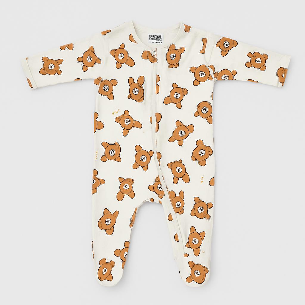 Questo adorabile pigiama intero per neonati renderà le notti del tuo piccolo ancora più dolci! Realizzato in morbido cotone, presenta un delizioso motivo con teneri orsetti arancioni che metteranno subito di buon umore. Le maniche lunghe e il design a zip rendono il cambio facile e veloce, mentre i piedi coperti tengono al caldo i piccolini. Nonostante sia un capo usato, si presenta in ottime condizioni, pronto a regalare comfort e sogni sereni al tuo bimbo. Un must-have per le notti coccolose!