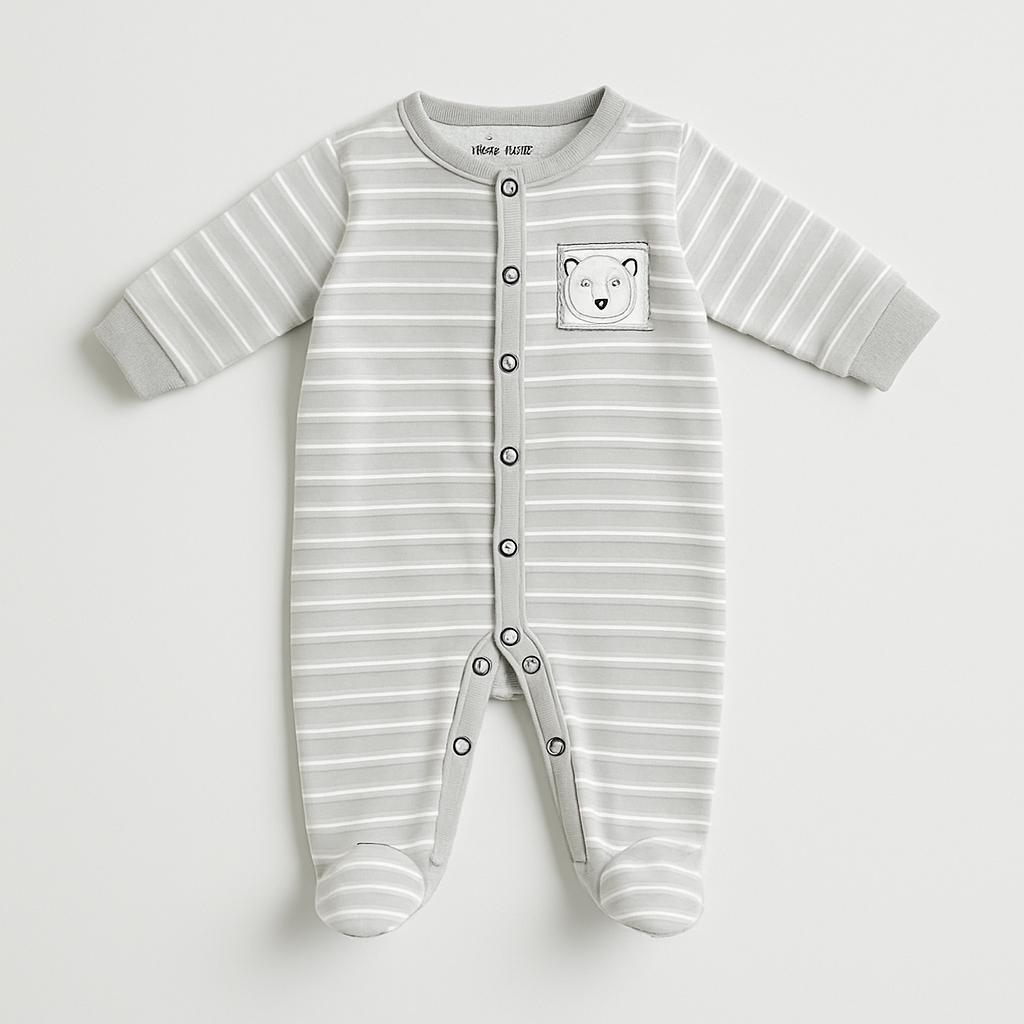 Questo adorabile pigiamino grigio a righe è perfetto per avvolgere i tuoi piccoli in un abbraccio di morbidezza! Con un grazioso design che include un tenero orsetto sulla taschina, questo body è un mix di comfort e dolcezza. Realizzato in tessuto cotonato, le maniche e i piedi chiusi mantengono il bambino caldo durante le fresche notti. Le pratiche aperture con bottoni rendono il cambio di vestiti semplice e veloce. Nonostante sia un capo usato, è in ottime condizioni e pronto per accompagnare dolci sogni e avventure nei primi mesi di vita!