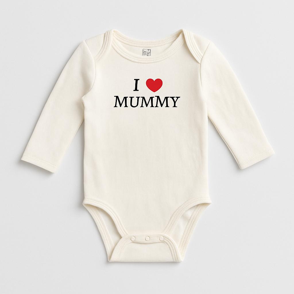 Questo adorabile body per neonati è un piccolo tesoro da indossare! Realizzato in morbido cotone bianco, il body presenta la scritta “I ❤️ MUMMY” in un vivace contrasto di rosso e nero, perfetto per esprimere tutto l'amore per la mamma. Le maniche lunghe tengono al caldo il tuo piccolo durante le fresche giornate, mentre il pratico sistema di chiusura a bottoncini rende il cambio facile e veloce. Nonostante sia usato, si presenta in ottime condizioni e pronto a far sorridere tutti. Questo body è un regalo ideale per celebrare il legame unico tra madre e figlio!
