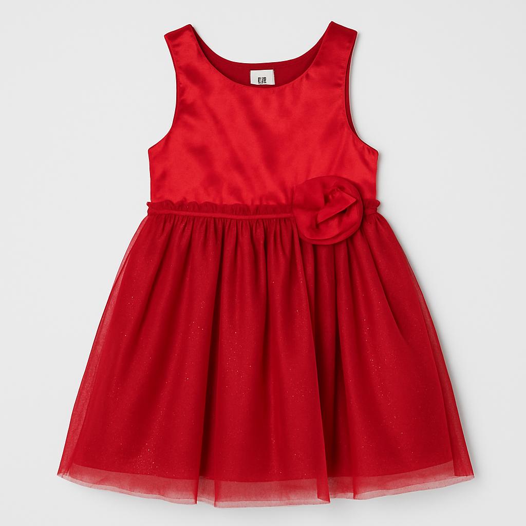 Questo incantevole abito da festa per bambina è un vero sogno di stile! Realizzato in un vivace rosso, il vestito presenta una gonna ampia in tulle che danza ad ogni passo. Il corpetto è elegante e luminoso, mentre una bella rosa decorativa in vita aggiunge un tocco di dolcezza. Perfetto per occasioni speciali o per far sentire le piccole delle vere principesse, questo abito usato è in ottime condizioni e pronto a regalare momenti magici. Un capo da non perdere per ogni mini fashionista!