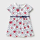 Questo adorabile vestitino presenta un delizioso motivo floreale che farà innamorare la tua piccola! Realizzato in morbido cotone, il design bianco è decorato con cuori rossi e blu che aggiungono un tocco di allegria. Il colletto classico e le maniche corte conferiscono un’aria chic e raffinata, rendendo questo abito perfetto per occasioni speciali o semplici uscite estive. La vita è adornata da un elegante nastro blu che accentua la silhouette. Nonostante sia un capo usato, si trova in buone condizioni, pronto per essere sfoggiato da una piccola principessa in qualsiasi occasione!