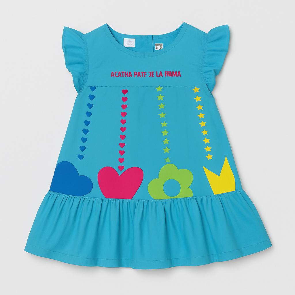 Questo adorabile vestito di Agatha Ruiz de la Prada è il sogno di ogni piccola fashionista! Realizzato in cotone leggero e resistente, presenta un vivace colore azzurro che illumina ogni giornata. Le maniche a volant e il taglio svasato aggiungono un tocco di femminilità e movimento, mentre le coloratissime applicazioni di cuori e fiori portano un arcobaleno di allegria. Perfetto per feste, giochi o semplici passeggiate, questo vestito usato è in ottime condizioni e farà brillare il guardaroba della tua bimba! Un capo iconico che unisce comfort e stile!