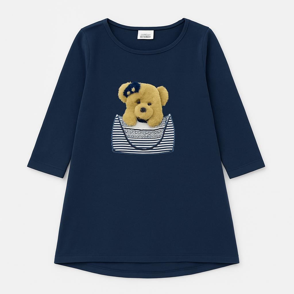 Questo adorabile vestito blu scuro è l'ideale per le giornate di gioco delle piccole! Realizzato in morbido cotone, presenta un delizioso design con un orsacchiotto ricamato che affiora da una tasca a righe, rendendolo irresistibile. Le maniche lunghe lo rendono perfetto per le mezze stagioni, mentre il taglio leggermente svasato favorisce la libertà di movimento. Nonostante sia un capo usato, si presenta in ottime condizioni, pronto per essere indossato da una giovane esploratrice. Un vestito che combina comfort e stile, perfetto per ogni avventura!