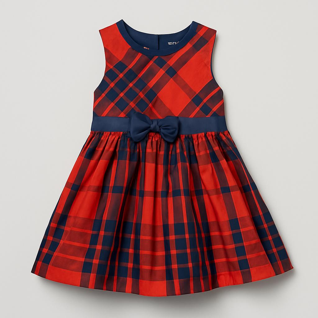 Questo incantevole vestito a maniche corte è perfetto per la tua piccola! Caratterizzato da una frizzante fantasia tartan rossa e blu, questo abito dona un tocco di eleganza a ogni occasione. La gonna ampia, impreziosita da un delicato fiocco in vita, offre un look giocoso e raffinato. Realizzato in tessuto leggero, è ideale per le feste e per eventi speciali. Anche se è un capo usato, si presenta in ottime condizioni e sarà un'aggiunta straordinaria al guardaroba della tua piccola principessa!