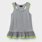Scopri questa adorabile canotta grigia, perfetta per le calde giornate estive! Realizzata in morbido cotone, offre comfort e freschezza. Il dettaglio del bordo a quadretti e il vivace profilo verde donano un tocco di allegria e originalità, rendendo questo capo unico nel suo genere. Con le spalline giocose e il taglio fluido, questa canotta è ideale per le piccole esploratrici che amano giocare all'aperto o trascorrere pomeriggi al sole. Nonostante sia un pezzo usato, si presenta in ottime condizioni, pronta a regalare sorrisi e stile!