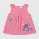 Questo adorabile vestito rosa di marca Happy è perfetto per le piccole sognatrici! Realizzato in morbido cotone, presenta un'incantevole applicazione di coniglietto che regala un tocco di dolcezza. Le spalline con bottoni e la gonna svasata assicurano comfort e libertà di movimento, rendendolo ideale per ogni avventura estiva. La taschina sul davanti offre un dettaglio funzionale e carino, perfetto per custodire piccoli tesori. Nonostante sia un capo usato, si presenta in ottime condizioni, pronto a far brillare il guardaroba della tua bimba!